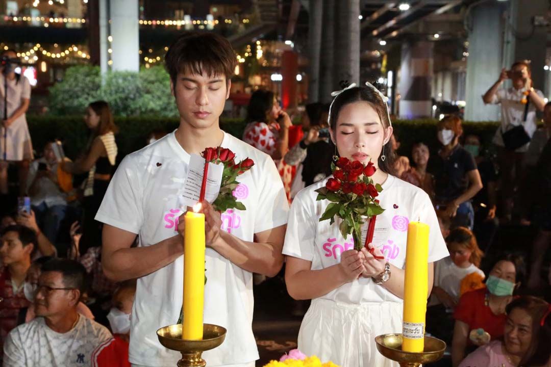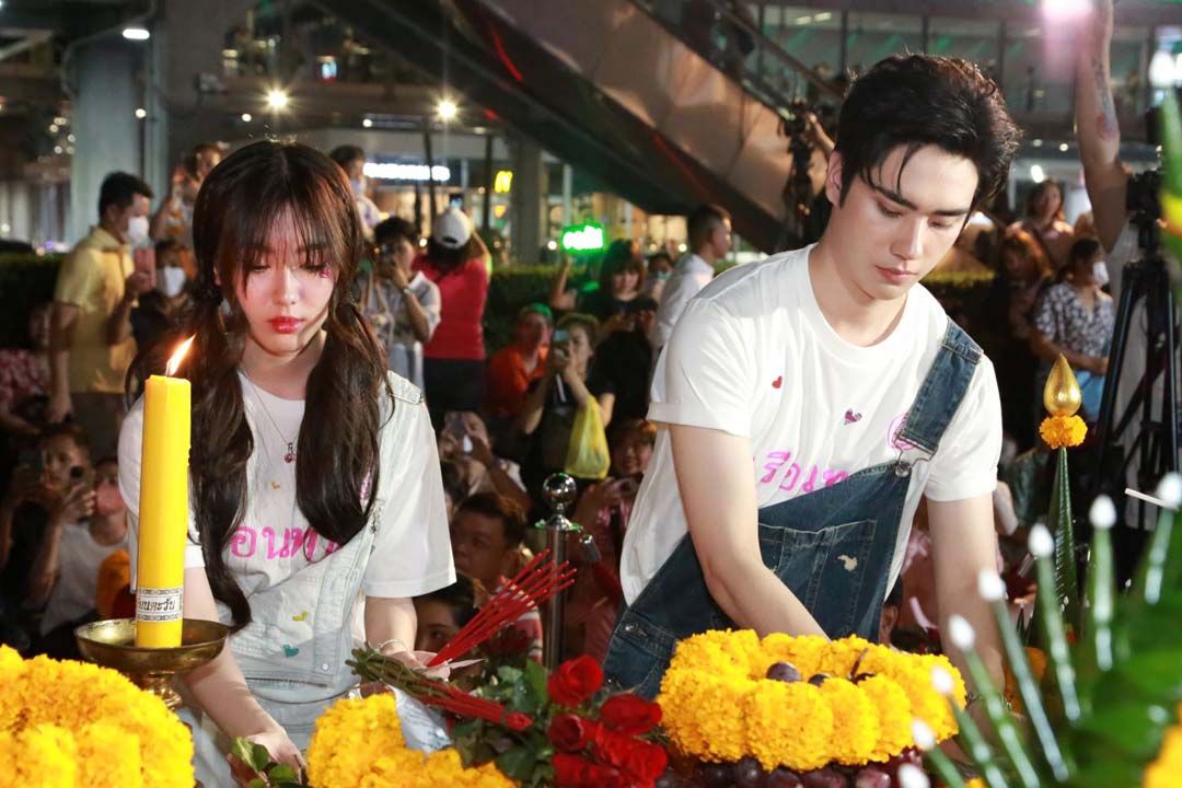 ฟาก “ออกัส-น้ำฟ้า” จากละคร “รักท่วมทุ่ง” ได้ออกมาเล่าเพิ่มเติม “ออกัส วชิรวิชญ์” เผยว่า “วาเลนไทน์ปีนี้สนุกมาก ทีมฝั่งรักท่วมทุ่งเรามีการเล่นเกมหมุนวงล้อ ถ้าใครหมุนไปที่รักท่วมทุ่งก็จะได้เสื้อละครรักท่วมทุ่งกลับบ้านไปครับ และวันนี้ถือว่าเป็นโอกาสที่ดีมาก ๆ ที่กัสจะได้ไหว้พระตรีมูรติเป็นครั้งแรก กัสตั้งใจมาขอเรื่องความรักเลยครับผม และถ้าผมเป็นมานะก็อยากขอให้ความรักของเราสองคนเป็นไปได้ เพราะความรักของเรามีให้มะยมหรือสายสมรเต็มร้อยอยู่แล้ว แต่สถานการณ์หรือเหตุการณ์ต่าง ๆ มันทำให้รู้สึกว่าความรักของเรามันยากนะ แต่เราก็ไม่ยอมแพ้ ก็ขอฝากละคร รักท่วมทุ่ง ของเราด้วยครับมาถึงโค้งสุดท้ายแล้ว ฝากติดตามกันเยอะ ๆ นะครับ” ทางสาว “น้ำฟ้า ธัญญภัสร์” เผยว่า “หนูเคยมาไหว้องค์พระพิฆเนศและก็เหมือนจะเคยไหว้พระตรีมูรติด้วย แต่ว่านานมาก ๆ แล้ว ถ้าวันนี้เป็นมะยมก็คงมาขอให้แม่ผ่องเปิดใจให้มะยมสักนิด และจะขอแม่ของเราให้เอ็นดูมานะด้วย ยังไงก็ฝากทุกคนไปลุ้นความรักของมานะกับสายสมรกันต่อใน รักท่วมทุ่ง ค่ะ”
