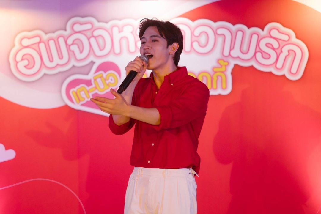 เต-นิว เผยว่า“วันนี้เรามาร่วมกิจกรรมอัพจังหวะความรักกับป๊อกกี้เราล่องเรือร่วมกับผู้โชคดี 50 ที่สร้างสรรค์งานประดิษฐ์ขึ้นมา แฟนคลับของเราต้องทดสอบความสร้างสรรค์อยู่ตลอด เป็นกิจกรรมที่ได้ใกล้ชิดพวกเราเป็นพิเศษ ต้องแข่งกันด้วยความคิดสร้างสรรค์หน่อย ยิ่งมากับป๊อกกี้ด้วยก็มาด้วยธีมสีชมพูเหมาะกับเดือนแห่งความรัก พวกเราเลยแต่งตัวสีชมพูมาด้วย ป๊อกกี้พาเรามากับแฟนๆต้องขอบคุณมากๆครับ วันนี้เรามีร้องเพลง เล่นเกม พูดคุยกับแฟนๆ ครับ หวังว่าทุกคนจะได้รับความสนุก ความหวานละมุนกลับบ้านไปนะครับ”