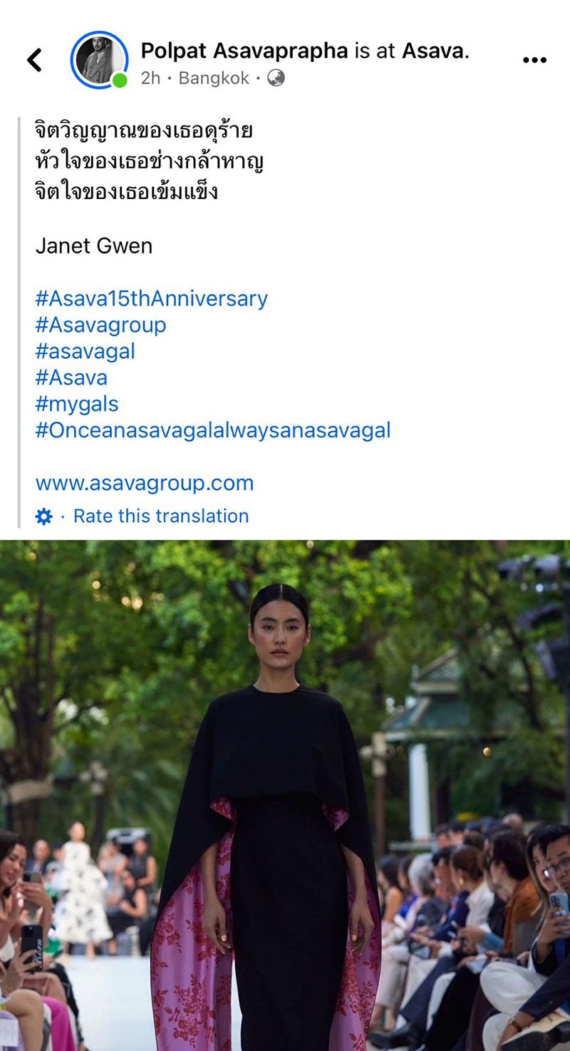 ขณะที่ เฟซบุ๊ก Polpat Asavaprapha ได้โพสต์ให้กำลังใจ โดยระบุว่า Her soul is fierce