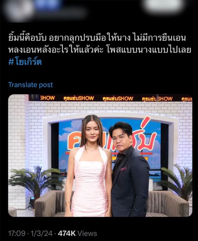 โดยงานนี้หลังรายการได้ปล่อยรูปคู่ออกมา หลายคนก็ชื่นชมสาวโยเกิร์ต ว่าวันนี้มาแบบสวยสตรองมาก มีความเริ่ดๆ เชิ่ดๆ สมเป็นนางแบบตัวท็อปสุดๆ และการถ่ายรูปคู่กับพีเค ก็ยืนตัวตรงแบบสบายๆ ไม่ต้องเอนตัวเพื่อเซฟความสูงให้ใครอีกแล้ว