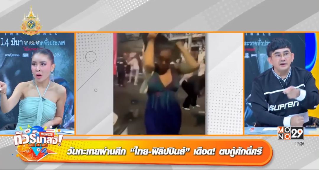 เม้าแซ่บคุยเพลิน พร้อมลุยเคลียร์ข่าวที่เกิดขึ้นทุก ๆ วันจันทร์ถึงวันศุกร์ กับพิธีกรแถวหน้าของเมืองไทยล่าสุด พชร์อานนท์, เป็กกี้ ศรีธัญญา และ ซานิ-นิภาภรณ์ ฐิติธนการ ในรายการ “ทัวร์มาลง” ประจำวันอังคารที่ 5 มีนาคม 2567 ทางช่อง MONO29ประเดิมด้วยประเด็นร้อน ศึกกะเทยไทย-ฟิลิปปินส์ ณ ซอยสุขุมวิท 11 หลังเกิดกรณีกะเทยฟิลิปปินส์กว่า 20 คน รุมทำร้ายกะเทยไทย 2 คน จนได้รับบาดเจ็บ แล้วยังนำลิปวิดีโอไปโพสต์ลงในกลุ่มในลักษณะเยาะเย้ยถากถาง ทำนอง “ฟิลิปปินส์วินไทย”จนทำให้เหล่าพี่สาวกะเทยไทยที่เห็นคลิปดังกล่าวทนไม่ไหวออกมารวมตัวครั้งใหญ่โดยไม่ได้นัดหมายรวมกว่าพันคนเพื่อกอบกู้ศักดิ์ศรีกะเทยไทย ท่ามกลางบรรยากาศสุดชุลมุน เหยียบหัว กระโดดจริง ไม่ต้องใช้สลิง