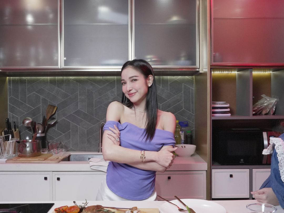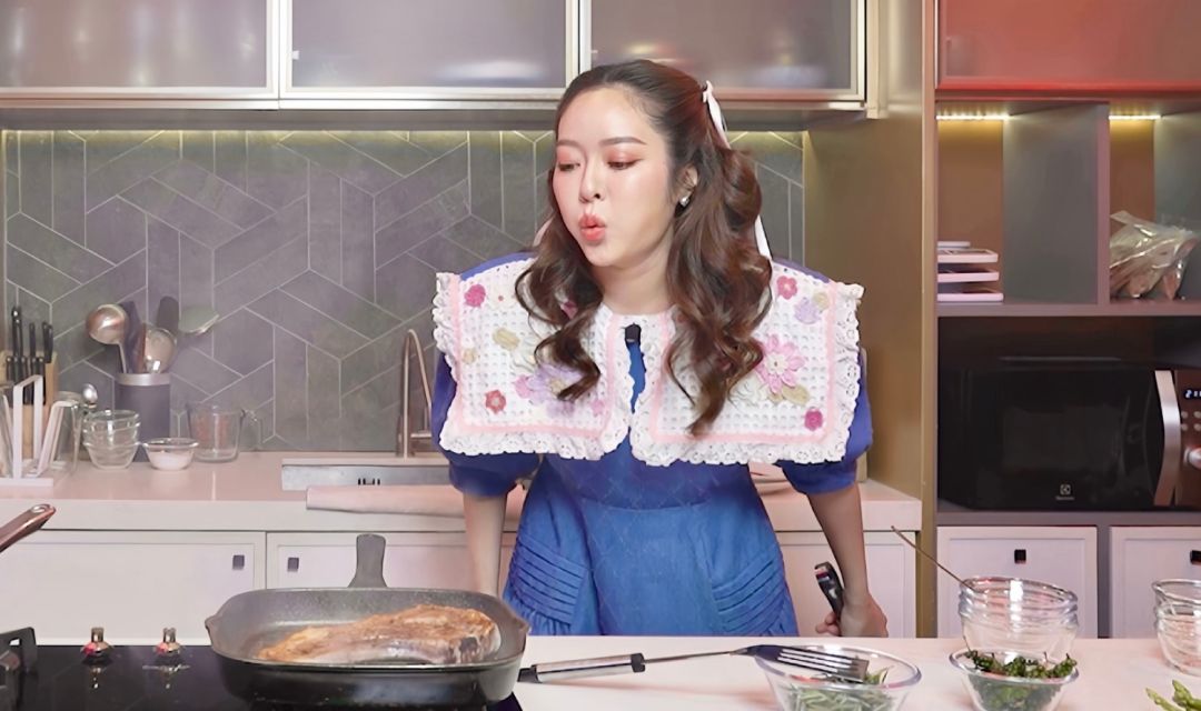 แพทณปภา :คือมันก็ไม่เชิงประจำหรอกเพราะว่าแพงเพียงแต่มันเป็นเมนูที่เวลาคิดอะไรไม่ออกผู้ชายก็จะพูดขึ้นมาว่ากินสเต็กไหมคือด้วยความที่เขาไปใช้ชีวิตอยู่ที่เมืองนอกแล้วก็ไปทำงานอยู่ในร้านอาหารไทยเขาก็เลยมีความรู้เลยชอบทำเมนู “พอร์คชอปซอสเปปเปอร์” แล้วล่าสุดเขาซื้อต้นโรสแมรี่มาปลูกเพราะถ้าเราหมักด้วยโรสแมรี่มันจะหอมมาก