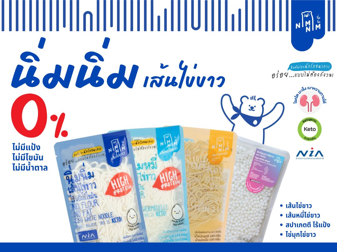 สำหรับผลิตภัณฑ์เส้นโปรตีนไข่ขาว “นิ่มนิ่ม” นวัตกรรมฝีมือคนไทยรายแรกของโลก เกิดจากแรงบันดาลใจที่อยากช่วยแก้ปัญหาให้ผู้ป่วยที่จำเป็นต้องบริโภคไข่ขาวในปริมาณมากตามที่กำหนด เช่น ผู้ป่วยโรคไต หรือผู้ป่วยโรคมะเร็งต้องบริโภคไข่ขาวจำนวนมาก บางรายถึง 10-20 ฟองต่อวัน จึงได้นำไข่ขาวมาแปรรูปเป็นเส้นไข่ขาวเพื่อให้ผู้ป่วย รวมไปถึงผู้รักสุขภาพสามารถเลือกประกอบอาหารได้หลากหลาย เช่น แทนเส้นก๋วยเตี๋ยว เส้นขนมจีน เป็นต้น ซึ่งนิ่มนิ่มมีโปรตีนสูงเทียบเท่าไข่ขาว 3 ฟองต่อน้ำหนักเส้น 100 กรัม และเก็บได้นานถึง 1 ปี