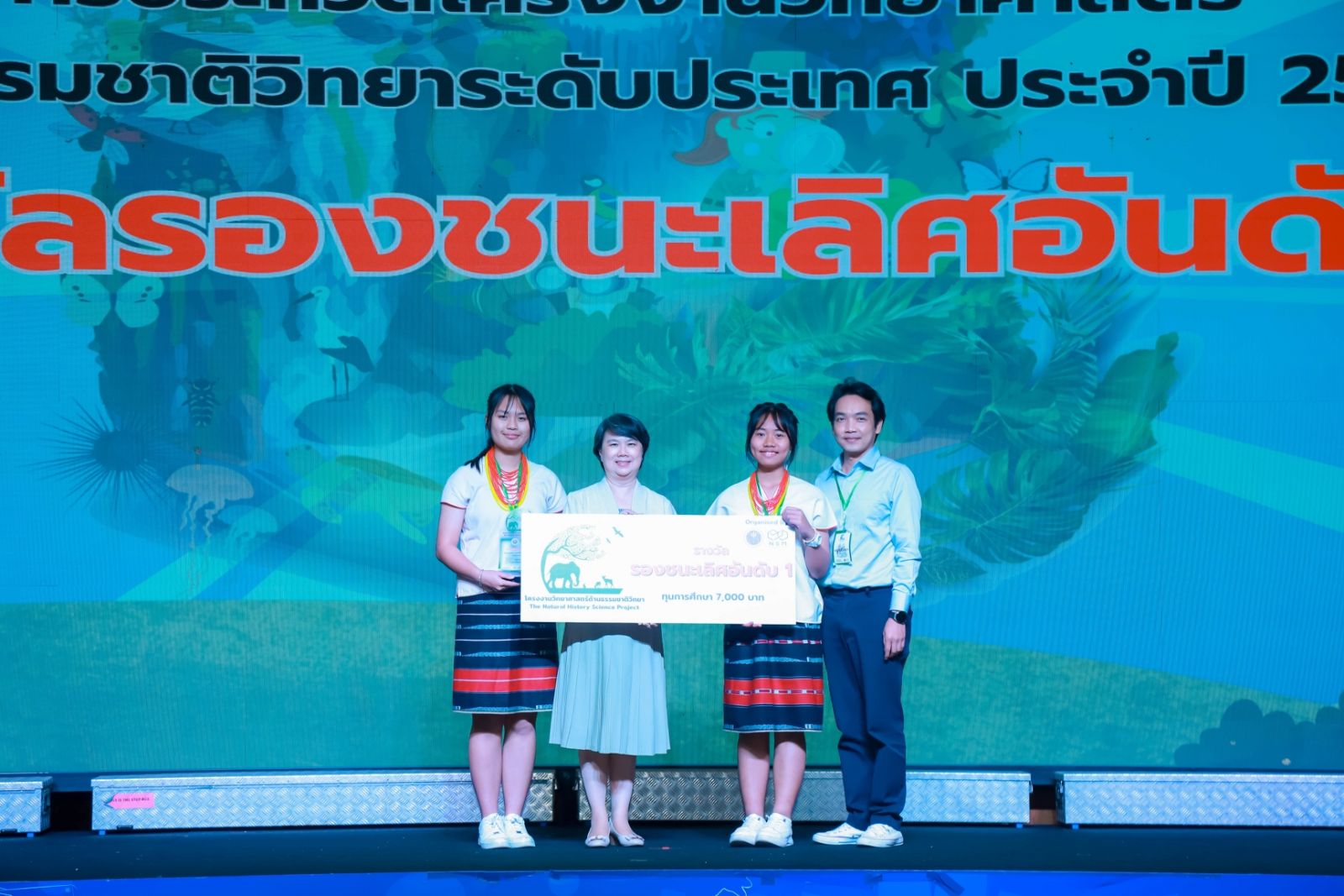 ดร.กรรณิการ์ กล่าวว่า “การประกวดแข่งขันโครงงานวิทยาศาสตร์ด้านธรรมชาติวิทยา ระดับประเทศ ประจำปี 2567 จัดขึ้น เพื่อเปิดเวทีให้เยาวชนได้มีโอกาสแสดงศักยภาพในการสื่อสารและถ่ายทอดเรื่องราวทางวิทยาศาสตร์ผ่านการจัดทำโครงงานวิทยาศาสตร์ด้านธรรมชาติวิทยาและสิ่งแวดล้อม เพื่อเชื่อมโยงความสัมพันธ์ระหว่างการดำรงชีวิตของเยาวชนกับธรรมชาติและสิ่งแวดล้อมรอบตัวในท้องถิ่น พร้อมสร้างแรงบันดาลใจให้เยาวชนคนรุ่นใหม่หันมาสนใจงานด้านวิทยาศาสตร์ธรรมชาติ โดยปีนี้ จัดขึ้นภายใต้แนวคิด “Discovering local biodiversity” ซึ่งในปีนี้มีเยาวชนในระดับชั้นมัธยมศึกษาตอนต้นส่งผลงานเข้าร่วมการแข่งขันกว่า 200 ทีมจากทั่วประเทศ โดยคัดเลือกมาสู่รอบชิงชนะเลิศจำนวน 40 ทีม ซึ่งผลปรากฏว่า ทีมโรงเรียนเบญจมเทพอุทิศจังหวัดเพชรบุรี เป็นผู้คว้าชัยในโครงงานเรื่อง “ความหลากหลายและความชุกชุมของสัตว์หน้าดินในบ่อนาเกลือ 5 ประเภท บริเวณตำบลปากทะเล อำเภอบ้านแหลม จังหวัดเพชรบุรี” มีสมาชิกในทีม คือ ด.ญ.เปรมญาพร เชาว์ดี ด.ญ.ปุญญพัฒน์ ทองสุข และนายสุขธนัท พรมจิต เป็นครูที่ปรึกษา ได้รับทุนการศึกษา 10,000 บาท พร้อมโล่รางวัลและประกาศนียบัตร