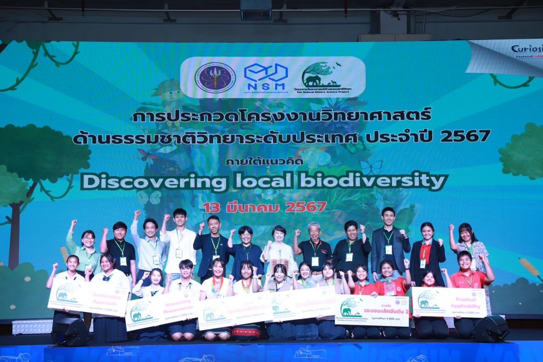 เมื่อวันที่ 13 มีนาคม 2567 ดร.กรรณิการ์ เฉิน รองผู้อำนวยการองค์การพิพิธภัณฑ์วิทยาศาสตร์แห่งชาติ (อพวช.) หรือ NSM เป็นประธานมอบรางวัลในการแข่งขันโครงงานวิทยาศาสตร์ด้านธรรมชาติวิทยา ระดับประเทศ ประจำปี 2567 ภายใต้หัวข้อแนวคิด “Discovering local biodiversity” ผลปรากฏว่าทีมโรงเรียนเบญจมเทพอุทิศจังหวัดเพชรบุรี คว้าชัยในโครงงานเรื่อง “ความหลากหลายและความชุกชุมของสัตว์หน้าดินในบ่อนาเกลือ 5 ประเภท บริเวณตำบลปากทะเล อำเภอบ้านแหลม จังหวัดเพชรบุรี” พร้อมรับโล่รางวัลและทุนการศึกษา 10,000 บาท ณ ห้องประชุม IT Auditorium พิพิธภัณฑ์เทคโนโลยีสารสนเทศ NSM ต.คลองห้า อ.คลองหลวง จ.ปทุมธานี