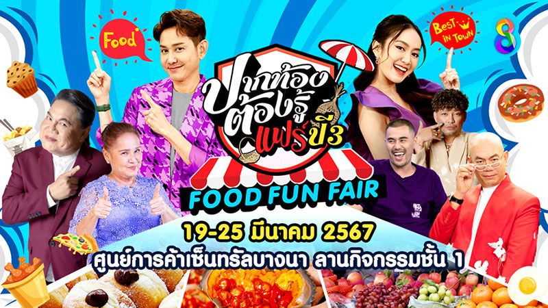 เตรียมพบกับมหกรรมอาหารสุดว้าว ของอร่อยสุดจึ้งที่ถูกคัดสรรของการรวมร้านเด็ด ร้านดัง ร้านเซเลบฯ จากทั่วไทยมากกว่า 80 ร้านค้า กันอีกครั้งในงาน “ปากท้องต้องรู้แฟร์ ปี 3 Food Fun Fair” การันตีความอลังการเวอร์วังความอร่อยด้วย 2 พิธีกรขวัญใจพ่อค้าแม่ขาย “เอ-ไชยา มิตรชัย” และ “แป้ง มิตรชัย”ภายใต้คอนเซ็ปต์ Fair ที่รวมร้านอาหาร ร้านดารา ร้านดังบนโซเชียล-Fee พร้อมลุ้นคูปองเงินสดทุกวัน ชิงของรางวัลมากมาย-Fun มาสนุกกับการลงทะเบียน Eat Rally ลุ้นรับรางวัลสุดพิเศษตลอดทั้งวันพร้อมไฮไลท์พิเศษ จากอาจารย์เป็นหนึ่ง ที่จะมาเลือก 9 ร้านค้าผู้โชคดี เขียนยันต์รวยอีกด้วย พบกันได้ใน วันที่ 19-25 มีนาคม 2567 นี้ ณ ศูนย์การค้าเซ็นทรัลบางนา ลานกิจกรรมชั้น 1 ห้ามพลาดเด็ดขาด!