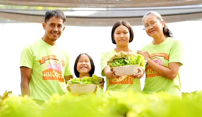“ทั้งอาชีพหลักและอาชีพเสริมส่งผลให้เกษตรกรมีความมั่นคง มั่งคั่ง และมีคุณภาพชีวิตที่ดียิ่งขึ้น ที่สำคัญเรายังให้ความสำคัญกับระบบนิเวศชุมชน สมาชิกของหมู่บ้านทุกคนมีส่วนร่วมขับเคลื่อนชุมชนสู่ความยั่งยืนผ่านหลากหลายโครงการ อาทิ ธนาคารน้ำใต้ดิน เพื่อให้การทำการเกษตรมีผลผลิตตลอดปี ถือเป็นอีกหนึ่งรูปแบบการเก็บกักน้ำไว้ใช้ยามจำเป็นได้อย่างเหมาะสมที่สุดสามารถลดค่าใช้จ่ายในการซื้อน้ำได้ถึง 1 ล้านบาท/ปีและกลายเป็นแหล่งเรียนรู้ต้อนรับผู้ที่สนใจเช่นเดียวกับป่านิเวศเฉลิมพระเกียรติ ร.๙ บนเนื้อที่ 14 ไร่ของหมู่บ้าน มีพรรณไม้ถึง 109 ชนิด จำนวน 5 หมื่นต้น และเกษตรกรยังต่อยอดความสำเร็จป่านิเวศฯ สู่การพัฒนาการใช้สมุนไพรเพื่อลดการใช้ยาปฏิชีวนะในการเลี้ยงสัตว์ สามารถลดค่าใช้จ่ายจากการใช้ยาปฏิชีวนะได้ 2.8 ล้านบาท/ปี” ภักดี กล่าว