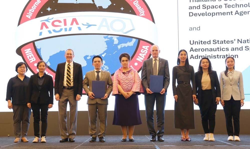 กระทรวงการอุดมศึกษา วิทยาศาสตร์ วิจัยและนวัตกรรม (อว.) โดยสำนักงานพัฒนาเทคโนโลยีอวกาศและภูมิสารสนเทศ (องค์การมหาชน) หรือ GISTDA ร่วมลงนามความร่วมมือกับ องค์การบริหารการบินและอวกาศแห่งชาติ สหรัฐอเมริกา (NASA) ภายใต้ โครงการ Airborne and Satellite Investigation of Asian Air Quality (ASIA-AQ) เพื่อร่วมกันศึกษาคุณภาพอากาศในประเทศไทย โดยมี น.ส.ศุภมาส อิศรภักดี รัฐมนตรีว่าการกระทรวง อว. ร่วมเป็นสักขีพยาน ณ โรงแรมเรเนซองส์พัทยา รีสอร์ท แอนด์ สปา จ.ชลบุรี