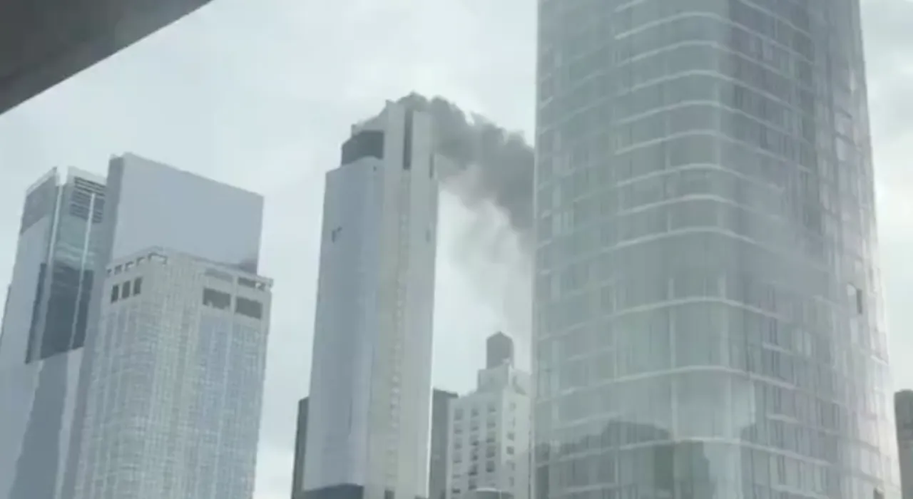 ระทึก ไฟไหม้ยอดตึกสูงระฟ้า ใกล้ที่ตั้งของตึกเวิลด์เทรดเซ็นเตอร์ในสหรัฐฯ (คลิป)