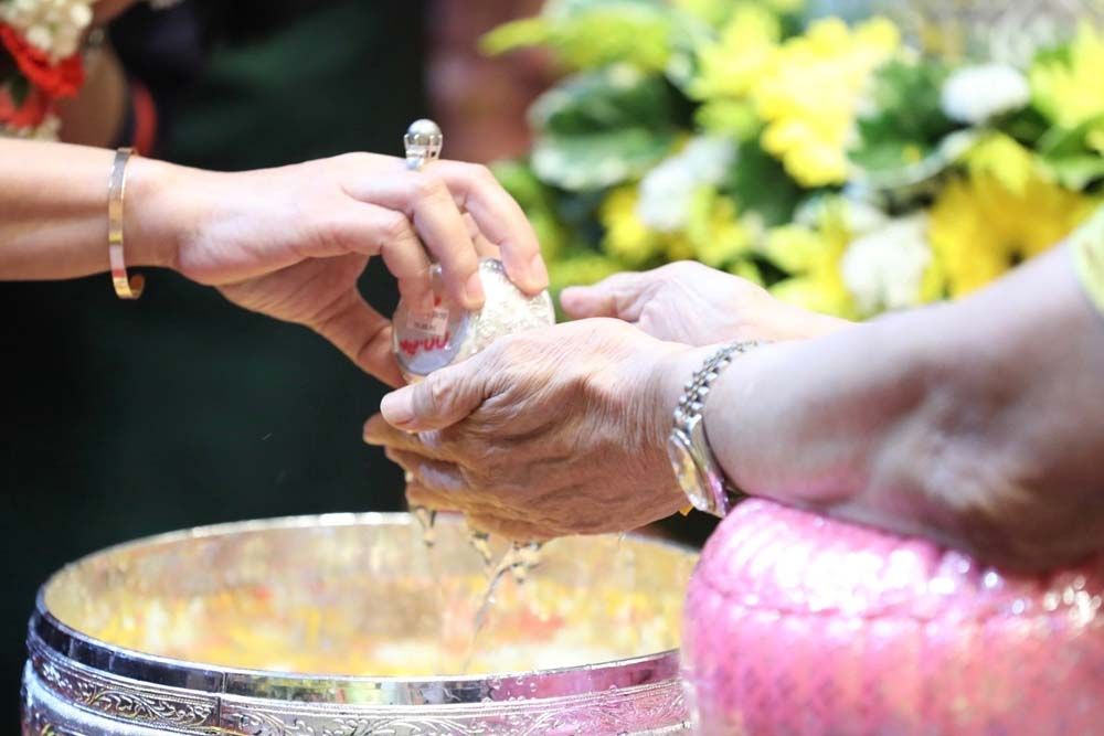 ต่อจากนั้น ข้าราชการอาวุโสได้รดน้ำขอพรรัฐมนตรี จากนั้น คณะผู้บริหารพร้อมข้าราชการ เจ้าหน้าที่ที่มาร่วมในพิธีได้รดน้ำขอพรรัฐมนตรีและข้าราชการอาวุโส โดยบรรรยากาศเป็นไปด้วยความชื่นมื่น