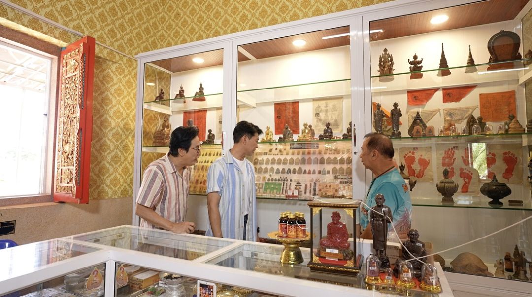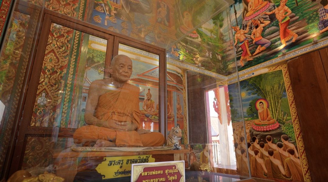 ไม่รอช้า สองพิธีกร พาไปไหว้พระประธานในอุโบสถ พูดคุยกันถึงประวัติของวัด พร้อมพาเดินชมความสวยงาม จากนั้นไปต่อกันที่มณฑปหลวงพ่อคง สุวณฺโณซึ่งเป็นสถานที่ประดิษฐานสรีระของหลวงพ่อคง และซุ้มเสือสถานที่สำคัญอีกแห่งหนึ่ง ที่ต้องมาสักการะที่ซุ้มเสือแห่งนี้จะมีเสือคู่บุญของหลวงพ่อคงอยู่ 2 ตัว คือพ่อเสือโสภา กับแม่เสือโสภี ด้านวัตถุมงคลของหลวงพ่อคง ท่านได้ทำเสื้อยันต์ ธง ตะกรุด แจกในช่วงสงครามโลกครั้งที่ 2 เหรียญรุ่น 1 และรุ่น 2