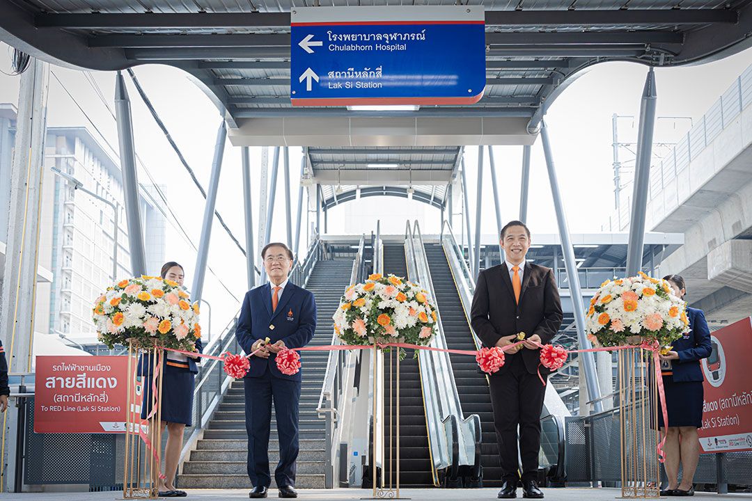 การรถไฟแห่งประเทศไทย ร่วมกับราชวิทยาลัยจุฬาภรณ์ จัดพิธีเปิดใช้ทางเชื่อมต่อ Skywalk ระหว่างโรงพยาบาลจุฬาภรณ์กับสถานีหลักสี่ ในโครงการระบบรถไฟชานเมืองสายสีแดง ช่วงบางซื่อ-รังสิต ตามพระดำริ ใน ศาสตราจารย์ ดร. สมเด็จพระเจ้าน้องนางเธอ เจ้าฟ้าจุฬาภรณวลัยลักษณ์ อัครราชกุมารี กรมพระศรีสวางควัฒน วรขัตติยราชนารี ที่ทรงมีพระปณิธานแน่วแน่ที่จะช่วยเหลือประชาชนที่เดินทางไปใช้บริการโรงพยาบาลจุฬาภรณ์ ด้วยระบบขนส่งสาธารณะ ให้สามารถเดินทางได้อย่างสะดวก โดยมีนายนิรุฒ มณีพันธ์ ผู้ว่าการรถไฟแห่งประเทศไทย และศาสตราจารย์เกียรติคุณ นายแพทย์รัชตะ รัชตะนาวิน รักษาการรองเลขาธิการราชวิทยาลัยจุฬาภรณ์ เป็นประธานเปิดงาน พร้อมด้วยคณะผู้บริหารของทั้งสองหน่วยงาน เข้าร่วมพิธี ณ ด้านหน้าอาคารศูนย์การแพทย์มะเร็งวิทยาจุฬาภรณ์ โรงพยาบาลจุฬาภรณ์ เขตหลักสี่ กรุงเทพฯ