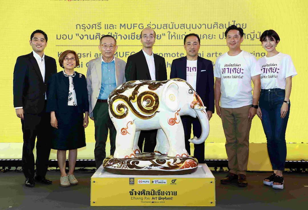 ธนาคารกรุงศรีอยุธยา จำกัด (มหาชน) ร่วมกับ มิตซูบิชิ ยูเอฟเจไฟแนนเชียล กรุ๊ป (MUFG) สถาบันการเงินที่ใหญ่ที่สุดในญี่ปุ่นและเป็นกลุ่มสถาบันการเงินชั้นนำของโลก นำโดย Mr.Takashi Waku shima Executive Vice President, Head of Corporate Planning Division of Krungsri ร่วมด้วย นพ.กอบชัย จิตรสกุล นายกสมาคม ฝรั่งเศส เชียงราย และประธานกรรมการบริษัท กรีนวิง จำกัด พร้อมด้วยคณะผู้บริหารของกรุงศรี และ MUFG ร่วมส่งมอบงานปั้นช้างศิลป์เชียงราย จำนวน 8 เชือก เพื่อจัดตั้งใน 6 สถานที่ท่องเที่ยวต่างๆ ในประเทศญี่ปุ่น ได้แก่ อาคารทาเคยะกรุงโตเกียว วัดคาคูโอะซัง นิตไทจิเมืองนาโกย่า พิพิธภัณฑ์ศิลปะ เมืองโอตารุ กรุงฮอกไกโด รุสุสึ รีสอร์ท เมืองอะบุตะ กรุงฮอกไกโด กาล่า ยูซาว่าสโนว์ รีสอร์ท เมืองยูซาว่า จังหวัดนิงาตะ และ HOKKAIDO BALLPARK F VILLAGE กรุงฮอกไกโด ทั้งนี้ เพื่อถ่ายทอดความเป็นเอกลักษณ์อันงดงามของช้างไทยผ่านเครือข่ายของ MUFG และยังเป็นการสานต่อสัญลักษณ์แห่งมิตรภาพระหว่างไทยและญี่ปุ่นอีกด้วย