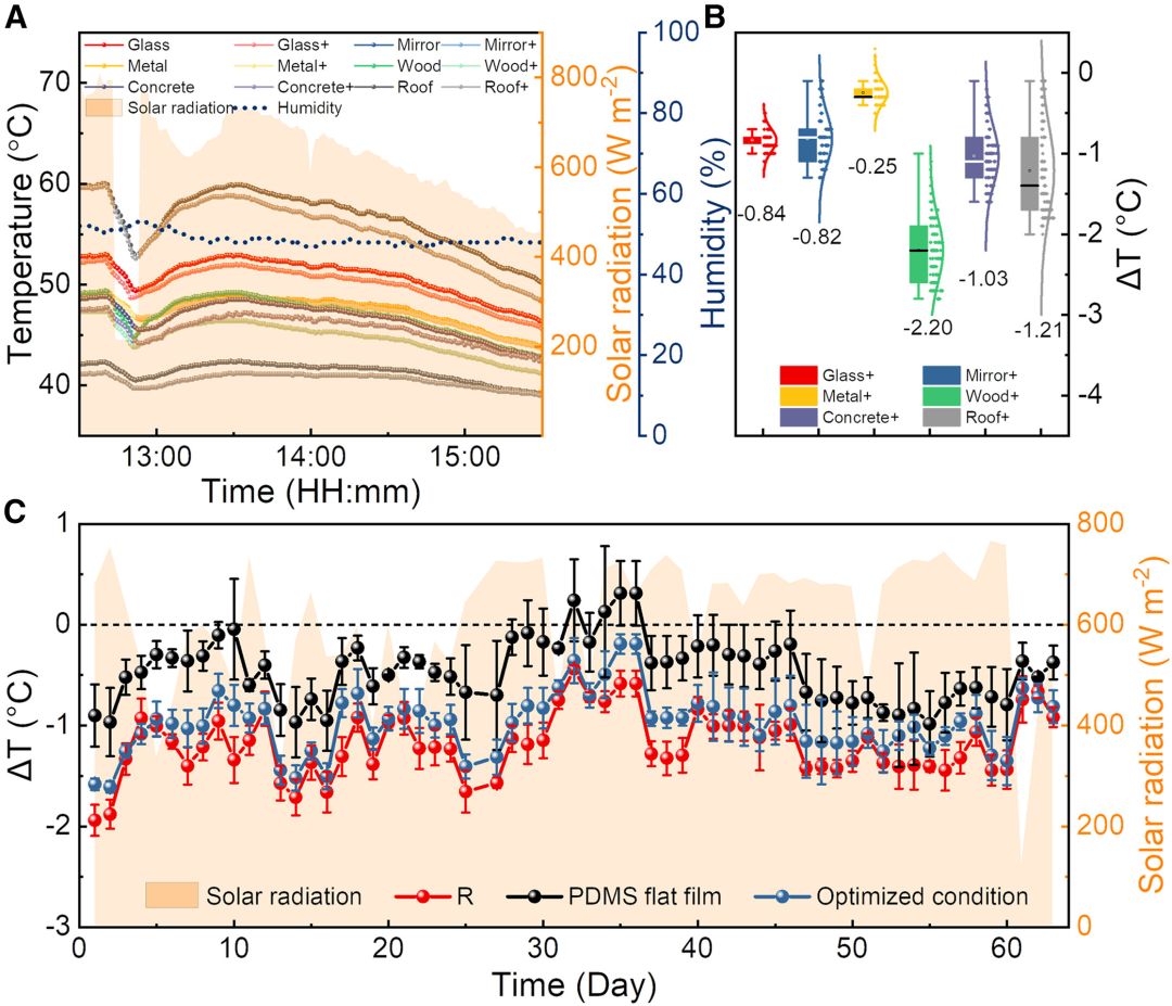 การพัฒนา “สเปรย์ฟิล์ม ลดอุณหภูมิ” นับว่าเป็นครั้งแรกของโลกที่กระบวนการสเปรย์ถูกนำมาใช้สร้างรูปทรงและรูปร่าง สามารถเพิ่มการระบายความร้อนด้วยการแผ่รังสีอินฟราเรดในช่วง 8 – 13 ไมโครเมตร และใช้ได้กับลักษณะพื้นผิวที่หลากหลาย แตกต่างจากสินค้าในปัจจุบันที่ใช้สติกเกอร์ในการเคลือบซึ่งจะเหมาะสำหรับติดกับวัสดุผิวเรียบเท่านั้น โดยทีมวิจัยได้ทำการทดลองเคลือบลงบนวัสดุก่อสร้างต่าง ๆ อาทิ แก้ว กระจก แผ่นโลหะสำหรับหลังคา (metal sheet) ปูน (concrete) และกระเบื้องหลังคา พบว่า วัสดุก่อสร้างที่ถูกเคลือบด้วย “สเปรย์ฟิล์ม ลดอุณหภูมิ” สามารถลดความร้อนโดยเฉลี่ยถึง 0.25 – 2.20 องศาเซลเซียส กระบวนการสเปรย์ทำได้เร็ว มีการขนส่งที่สะดวก และสามารถทำได้ขนาดเล็กใหญ่ตามที่ต้องการ ซึ่งนวัตกรรมนี้มีต้นทุนอยู่ในช่วง 20 – 50 บาทต่อตารางเมตร เมื่อเทียบกับราคาสินค้าลดอุณหภูมิด้วยการแผ่รังสีในท้องตลาดในปัจจุบันที่มีราคาในช่วง 200 – 500 บาท ต่อตารางเมตร