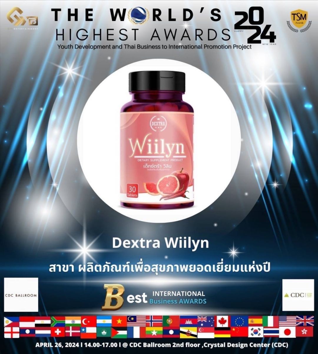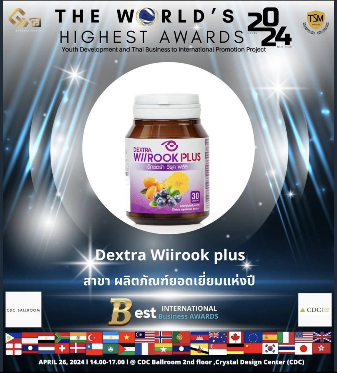 ซีดีซี บอลรูม : พระเอกลิเก นักร้อง นักแสดง คอมเมนเตเตอร์ และ นักเอนเตอร์เทนเนอร์คนดัง “ไชยา มิตรชัย” เจ้าของผลิตภัณฑ์อาหารเสริม Dextra Wiirook Plus รับรางวัล “ศิลปินนักบริหารที่ประสบความสำเร็จแห่งปี ” และรางวัล“ผลิตภัณฑ์ยอดเยี่ยมแห่งปี” คว้า2 รางวัล ในงาน THE WORLD’S AWARDS 2024 จัดขึ้น ในวันที่ 26 เมษายน 2567 ณ ซีดีซี บอลรูม (CDC Ballroom) เป็นรางวัลสำหรับการบริหารสู่ความเป็นเลิศที่มีความโดดเด่น