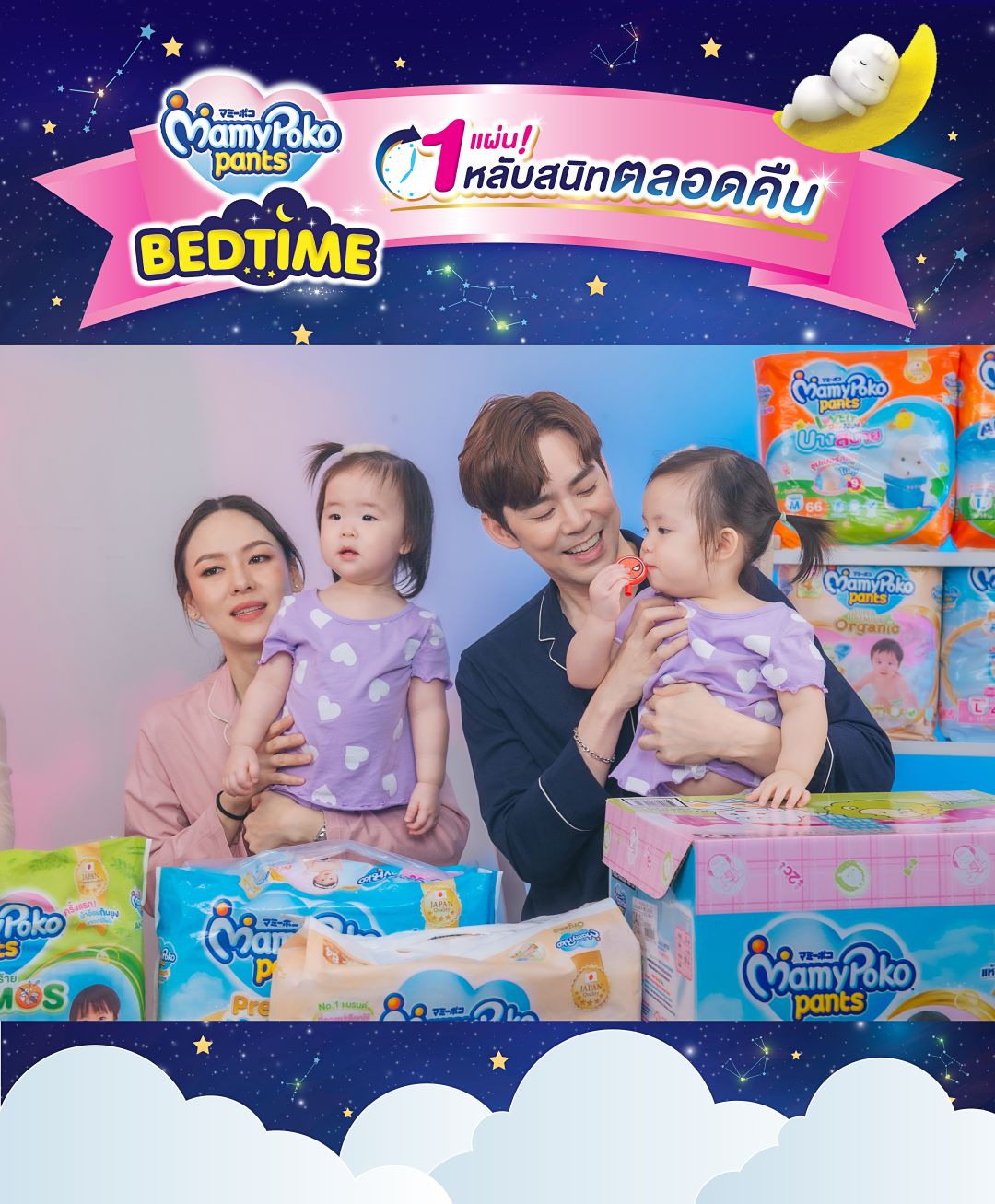 ขึ้นแท่นที่สุดของครอบครัวที่ทั้งน่ารักและน่าอิจฉา สำหรับครอบครัวของพ่อ “บีม – กวี ตันจรารักษ์”กับหม่ามี๊ “ออย – อฏิพรณ์จิตต์ธรรมวงศ์” และลูกแฝดทั้ง 4 คน ที่ต้องบอกว่าเป็นครอบครัวตัวอย่างของใครหลายๆคนก็ว่าได้ ล่าสุด!!!พ่อบีมและหม่ามี๊ออยได้มาเผยสุดยอดเคล็ดลับในการเลี้ยงลูกยามดึกด้วยตัวช่วยสำคัญอย่างMamyPoko Pants Bedtime (มามี่โพโค แพ้นท์ เบดไทม์)จาก บริษัท ยูนิ.ชาร์ม (ประเทศไทย) จำกัด ผู้ผลิตผ้าอ้อมคุณภาพ “มามี่โพโค” (MamyPoko)แบรนด์ที่ไม่เคยหยุดนิ่งในการพัฒนาผลิตภัณฑ์และคิดค้นนวัตกรรมใหม่ๆ อย่างต่อเนื่อง เพื่อให้การเลี้ยงลูกเป็นเรื่องที่ง่ายขึ้น ตอบโจทย์คุณภาพชีวิตที่ดีของคุณพ่อคุณแม่ชาวไทยเพราะอย่างMamyPoko Pants Bedtime (มามี่โพโค แพ้นท์ เบดไทม์)นี้ ใช้แค่เพียง 1 แผ่นลูกน้อยก็หลับสนิทได้ตลอดทั้งคืน จบปัญหาลุกขึ้นมาเปลี่ยนผ้าอ้อมกลางดึก คลายกังวลเรื่องที่นอนเปียก บอกลาขอบตาคล้ำหมีแพนด้าตลอดไปถือเป็นนวัตกรรมที่ทำมาซัพพอร์ทครอบครัวยุคใหม่ ให้คุณพ่อคุณแม่ก๊อปปี้ไปใช้ได้แบบไม่มีกั๊กอย่างแท้จริง!!!