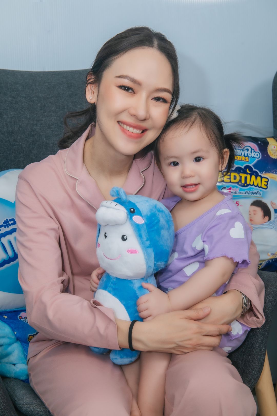 หม่ามี๊ออย – อฏิพรณ์จิตต์ธรรมวงศ์ เล่าว่า “ในฐานะคนเป็นแม่ บอกได้เต็มปากเลยว่ารู้สึกดีใจมากๆ ที่มีMamyPoko Pants Bedtimeผ้าอ้อมเด็กสำเร็จรูปสำหรับกลางคืนออกมา พร้อมนวัตกรรมพลังซึมซับ 1 แผ่นหลับสนิทตลอดคืน ลูกหลับสนิทจนถึงเช้า ทำให้เราคลายกังวลเรื่องรั่วซึมบนที่นอนไม่ต้องตื่นมาเปลี่ยนผ้าอ้อมกลางดึกอัยวาอัญญาเองก็ได้นอนหลับเต็มอิ่ม ได้รับฮอร์โมนการเจริญเติบโต (Growth Hormone) ได้อย่างเต็มที่พออัยวา-อัญญาตื่นมาก็อารมณ์ดี เลี้ยงง่ายมาก รวมถึงคุณแม่อย่างเราก็ได้พักผ่อนอย่างเต็มที่เช่นกันเหมาะกับคุณแม่ยุคใหม่มากๆที่เป็น Working mom ที่จะต้องเลี้ยงลูกและตื่นเช้าไปทำงาน”