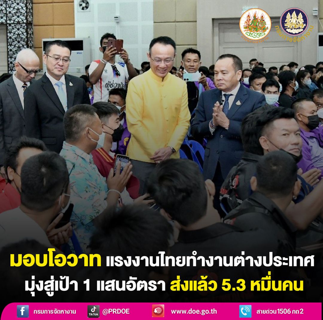 เลขาฯ ‘อารี’ มอบโอวาท 477 แรงงานไทย เตรียมส่งทำงานต่างประเทศ มุ่งสู่เป้าหมายส่งแรงงาน 1 แสนอัตรา เผยคืบหน้าล่าสุด ส่งแล้ว 5.3 หมื่นคน