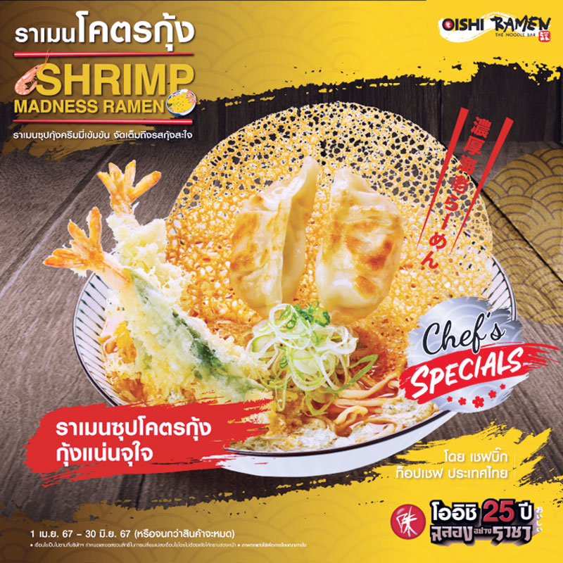 โออิชิ ราเมน X ท็อปเชฟ ประเทศไทย ชวนชิมเมนูใหม่ในธีม “Touch of Japanese Flavor” อาทิ “ราเมนโคตรกุ้ง” ราคาชามละ 229 บาท ถึง 30 มิ.ย. ที่ ร้านโออิชิ ราเมน ทุกสาขา