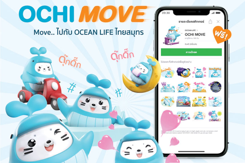 ชวนใช้ LINE STICKER “OCHI MOVE” น้องโอชิ Brand Mascot ของ OCEAN LIFE ไทยสมุทร ที่ได้รับรางวัลแบรนด์ที่สร้างผลงานการตลาดยอดเยี่ยมบนแพลตฟอร์ม LINE โหลดได้ฟรี www.ocean.co.th