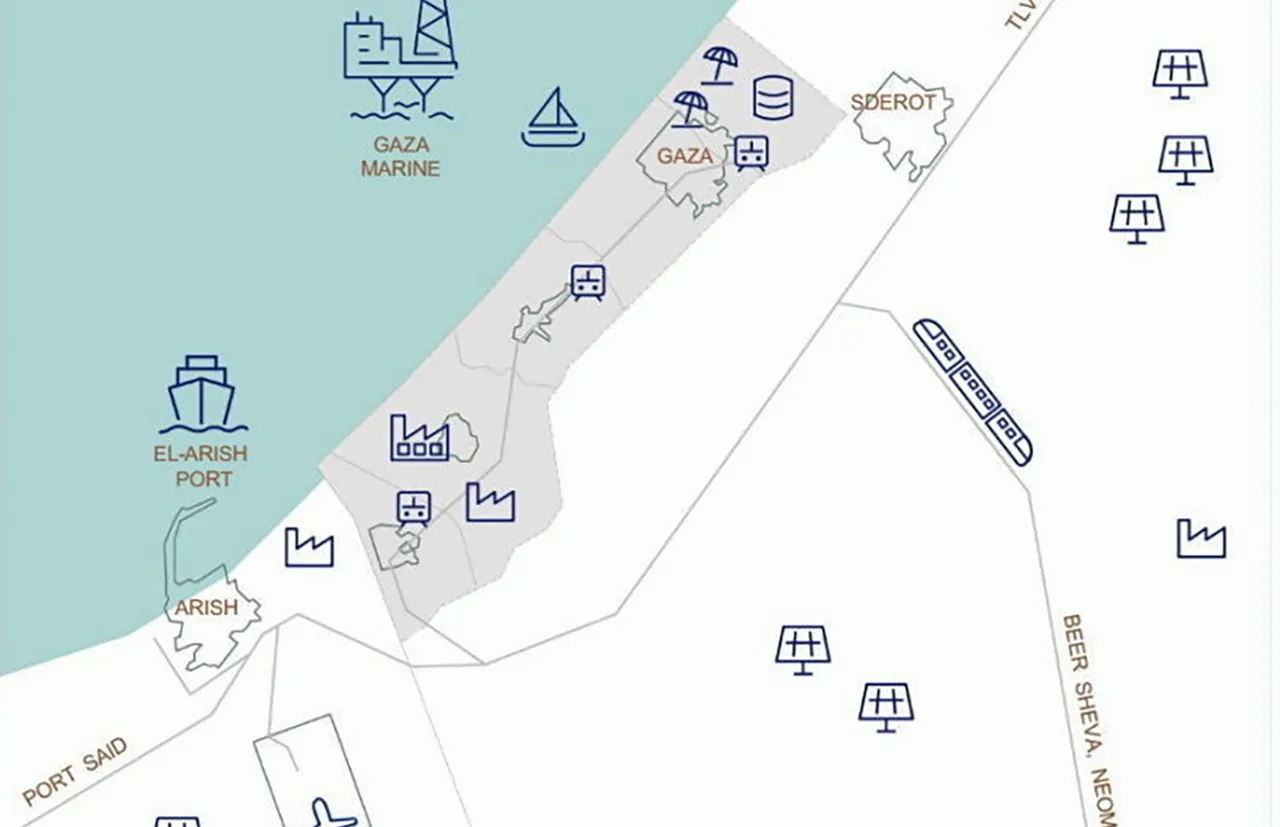 ในแผนการฉบับนี้ฉนวนกาซาได้ถูกขนานนามว่า เป็นค่ายด่านหน้าของอิหร่าน ที่คอยขัดขวางการเจริญเติบโตของห่วงโซ่อุปทานและความหวังของชาวปาเลสไตน์ ทั้งที่หากดูตามประวัติศาสตร์แล้ว พื้นที่ดังกล่าวถือเป็นเส้นทางการค้าที่สำคัญ “แบกแดด-อียิปต์” และ “เยเมน-ยุโรป” ของภูมิภาคตะวันออก กลางในอดีต