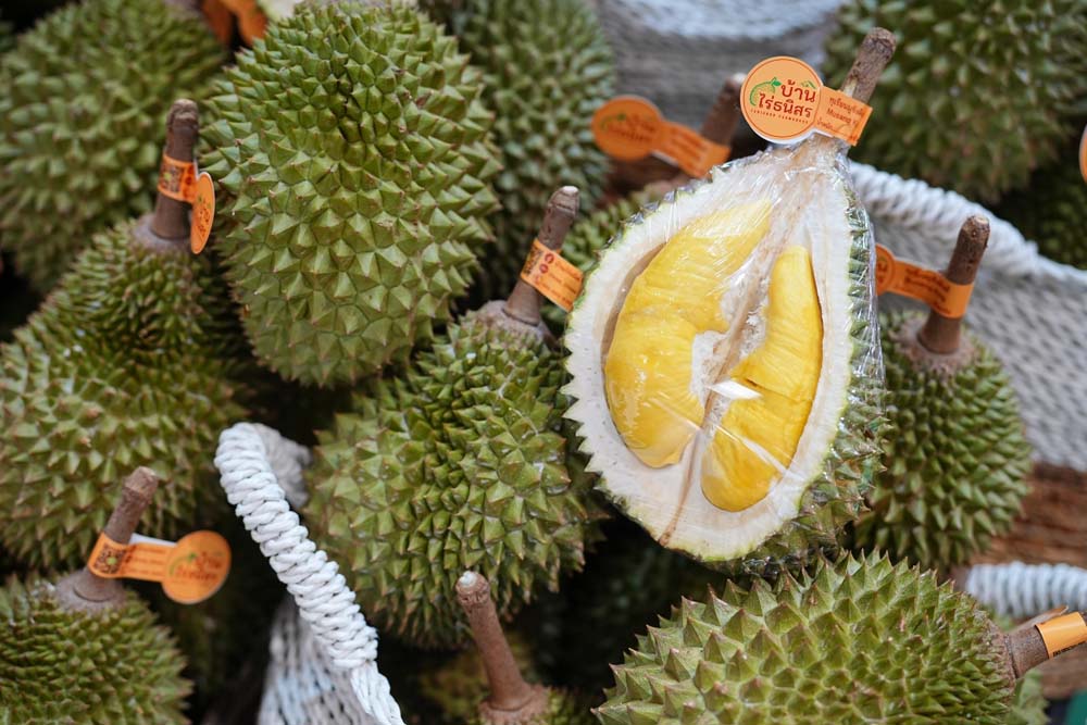 ศุภวุฒิ ไชยประสิทธิ์กุล ประธานเจ้าหน้าที่บริหาร กลุ่มบริหารสินค้าซูเปอร์มาร์เก็ตและฟู้ด และ พลอยชมพู อัมพุช ผู้อำนวยการใหญ่บริหารสินค้าซูเปอร์มาร์เก็ต (กูร์เมต์ มาร์เก็ต) ร่วมกันเปิดงานไปเมื่อเร็วๆ นี้ ภายในงานพบกับผลไม้เกรดพรีเมียมสด ใหม่ ตามฤดูกาลไว้มากที่สุด ผ่าน 4 ธีมหลัก RARE FRUIT ผลไม้ไทยหาทานยาก ราคาแพง ผลผลิตในแต่ละปีมีจำนวนจำกัด อาทิ ทุเรียนนนท์ ทุเรียนหมอนทอง กบสุวรรณ จากจังหวัดนนทบุรี แหล่งปลูกทุเรียนที่ได้รับการยอมรับว่ามีความอุดมสมบูรณ์ และมีสารอาหารที่เหมาะสมที่สุด ทำให้ทุเรียนรสชาติดี ได้รับความนิยมจนต้องจองกันตั้งแต่ยังไม่ออกผล ในแต่ละปีมีจำนวนผลผลิตน้อยมาก (จำหน่ายที่เดอะมอลล์ไลฟ์สโตร์ ทุกสาขา และเอ็มสเฟียร์)