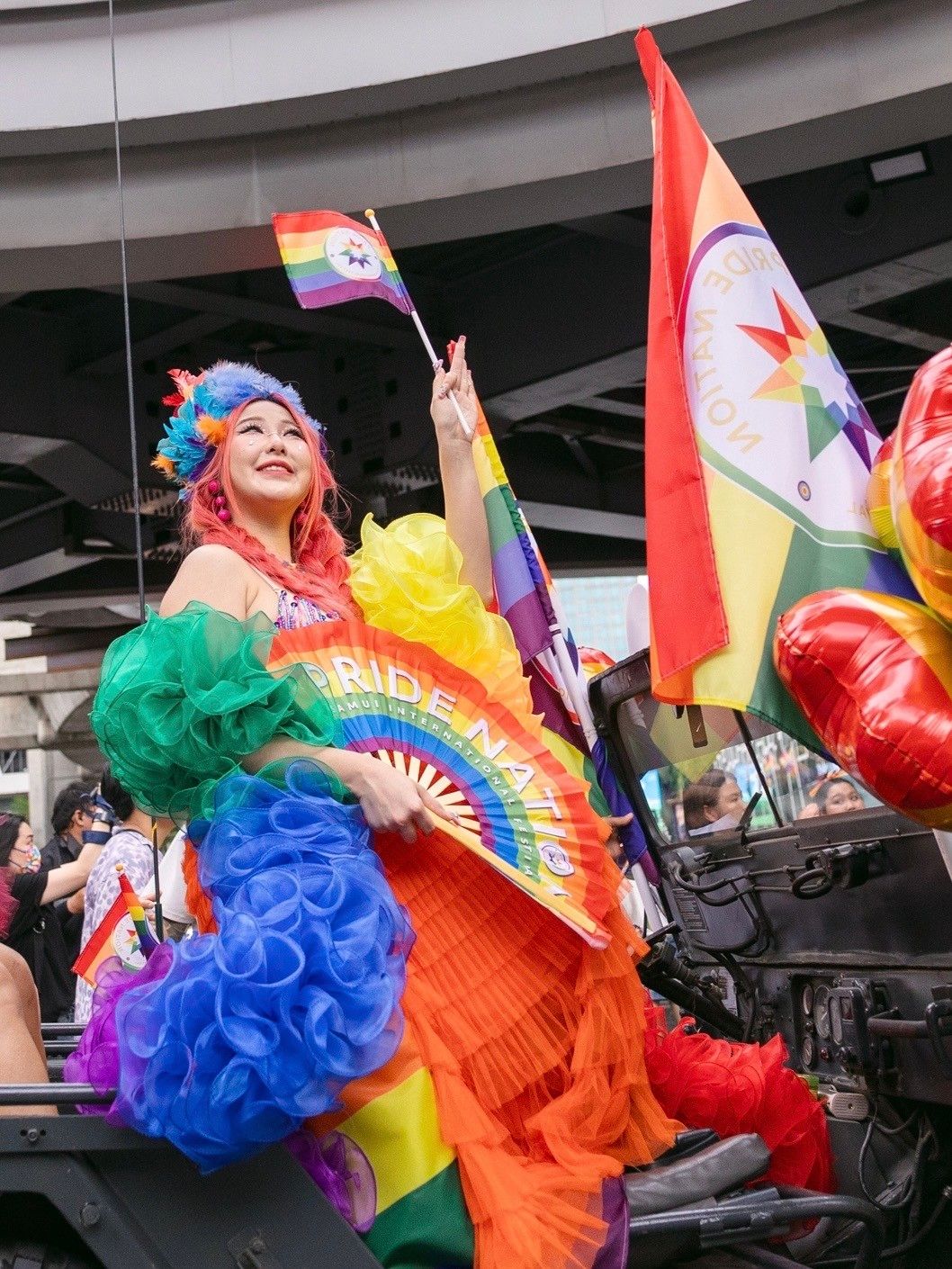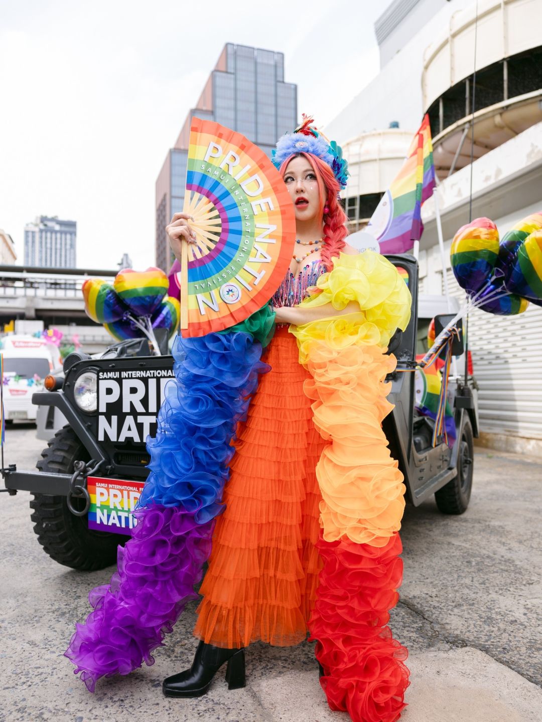 บรรยากาศเต็มไปด้วยความสนุกสนาน รอยยิ้ม แห่งเสรีภาพทางการแสดงออก โดยเซ็ตขบวน นำทีมด้วยแก๊งนักแสดงจากซีรีส์บอยเลิฟ Bad Guy My Boss เจ้านายร้ายรัก เจมส์ เพรสคอท, กาด พลอยสุภา, นิกกัคช์, แฟ้ม ตนุภัทร, แซค ณัฐภัทร, เพิร์ธ ณภัทร, คิณ อาณาคิณ, มาร์ค ธิระศักดิ์ และ เว็กซ์เตอร์ ศุภมน ที่คอยโบกธง PRIDE NATION SAMUI ให้โบกสะบัด อีกทั้งยังมีแฟนคลับทั้งชาวไทย และ อินเตอร์แฟนด้อม เข้ามาถ่ายรูป และโบกมือทักทายกันตลอดเส้นทาง ต่อด้วยขบวนของสาว ๆ นำโดย ตัวแม่นักร้องสาวดีว่าทรงพลัง หวาย ปัญญ์ธิษา พร้อมด้วย ชมพู อทิตา, ตังเม เมธาวี ที่สวยสง่าด้วยชุดสุดปึ้ง กระโปรงฟูฟ่องบนรถจี๊ป คอยทักทายแฟน ๆ ตลอดเส้นทางถนนพระราม1 ปิดท้ายด้วยขบวนเจ็ตสกีสุดซิ่งเสมือนโลดแล่นบนท้องทะเลสุดเฟี้ยว ของ โอห์ม ฐิติวัฒน์, อะตอม ณฐาภพ ที่มาโชว์ความเท่พร้อมสื่อสารให้แฟน ๆ มาร่วมจอยปิดท้ายเดือนแห่งไพรด์กันที่ เกาะสมุย ในงาน “PRIDE NATION SAMUI INTERNATIONAL FESTIVAL” เทศกาล Pride Festival ที่จัดจ้านที่สุดในภูมิภาคเอเชียตะวันออกเฉียงใต้ (Pride Nation is going to be ‘THE MOST FABULOUS FESTIVAL FOR ALL PRIDE FIRST TIME IN SOUTHEAST ASIA) ที่จะจัดขึ้น ในวันที่ 24-29 มิถุนายนนี้ ณ หาดเฉวง เกาะสมุย จังหวัดสุราษฎร์ธานี จัดเต็ม 6 วัน 6 คืน