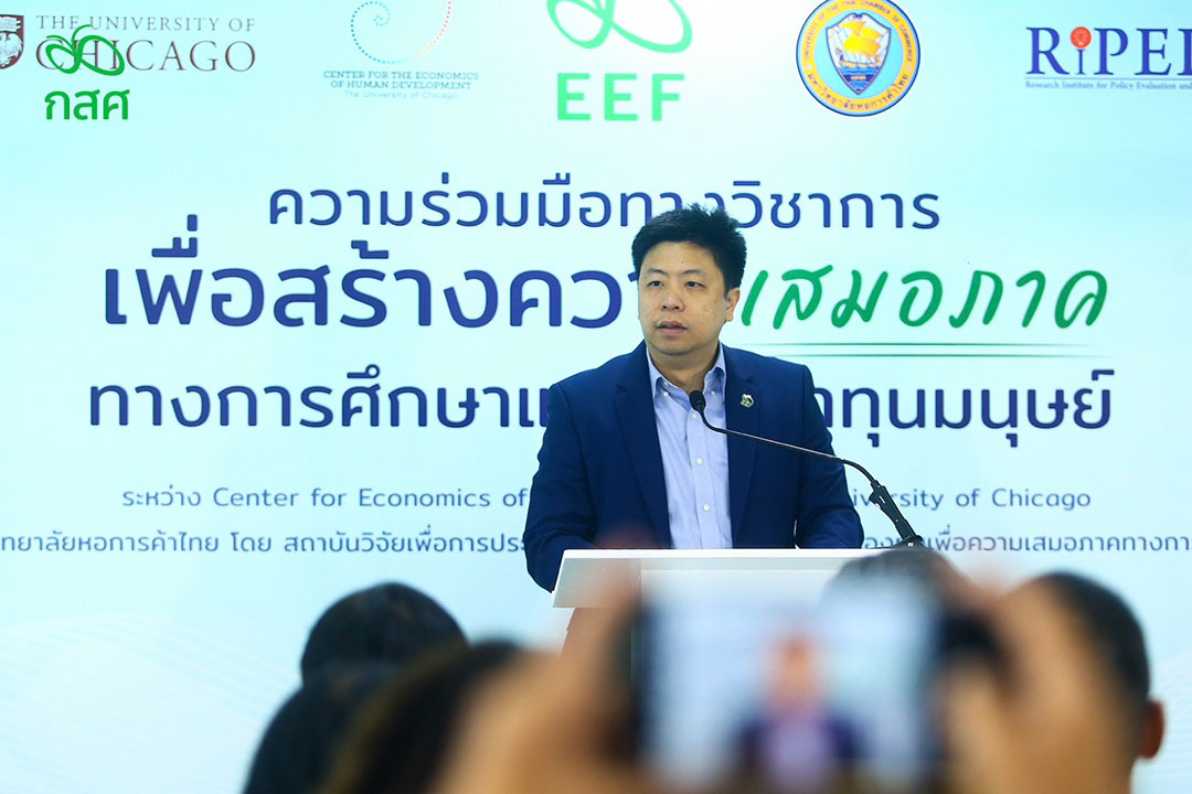 กองทุนเพื่อความเสมอภาคทางการศึกษา (กสศ.) มหาวิทยาลัยหอการค้าไทย และ Center for Economics of Human Development, University of Chicago โดย Professor James J. Heckman ริเริ่มความร่วมมือ ในข้อตกลงทางวิชาการเพื่อสร้างความเสมอภาคทางการศึกษาและพัฒนาทุนมนุษย์ เพื่อช่วยให้ประเทศไทยมีเครื่องมือทางนโยบายและข้อเสนอนโยบายในการพัฒนาทุนมนุษย์ได้อย่างรวดเร็วที่สุด และเริ่มต้นตั้งแต่แรกเกิด จนถึงวัยแรงงาน