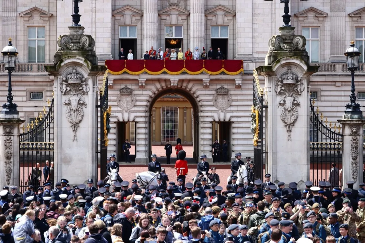 จากนั้นเหล่าเชื้อพระวงศ์นำโดย กษัตริย์ชาร์ลส์ที่ 3 กับสมเด็จพระราชินิคามิลลา ก็ปรากฏพระองค์ที่ระเบียงพระราชวังบักกิงแฮม พร้อมด้วยเจ้าชายวิลเลียมกับเจ้าหญิงเคท และพระโอรสกับพระธิดาทั้ง 3 พระองค์ และสมาชิกราชวงศ์องค์อื่นๆ โดยเจ้าหญิงแห่งเวลส์ทรงโบกพระหัตถ์ทักทายประชาชนที่มารวมตัวกันอย่างคับคั่ง ส่งท้ายพิธี