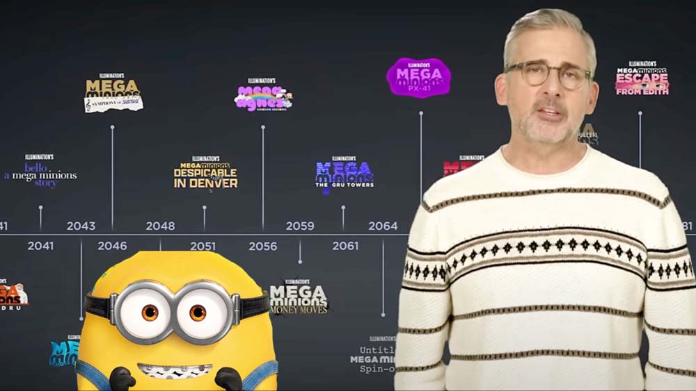 ✯✯ Universal สร้างคลิปโปรโมชั่นที่ล้อเลียนไทม์ไลน์ที่ซับซ้อนของจักรวาลภาพยนตร์ยอดฮิตในยุคปัจจุบันของค่ายดังMarvel, DC และ Star Wars โดยได้ สตีฟ คาเรลล์ มาให้เสียงในชื่อ MegaVerse ที่จะ จะเล่าเรื่องราวผ่าน หนัง 50 เรื่อง เชื่อมโยงกับสื่อต่างๆ มากมาย ที่แฟนๆ จะได้ติดตามกันในช่วง 100 ปี หลังจากนี้ แน่นอนว่าคลิปดังกล่าว เป็นเพียงมุกตลกล้อเลียนการสร้าง “จักรวาลภาพยนตร์” ในยุคนี้เท่านั้น แต่ในคลิปก็มีชื่อหนัง (ปลอม ๆ) ที่น่าสนใจอยู่หลายชื่อ อาทิ Mega-Minions : Electric Gru-Galoo, Mega-Minions :The Tax Write-Off,Mega-Minions : Quantum of Soulless และ Mega-Minions : Mega Musical On Ice เป็นต้น แคมเปญการตลาดสุดฮาของ Universal สร้างขึ้นเพื่อโปรโมท Despicable Me 4 ที่จะมีกำหนดเข้าฉายในโรงภาพยนตร์วันที่ 3 กรกฎาคมนี้