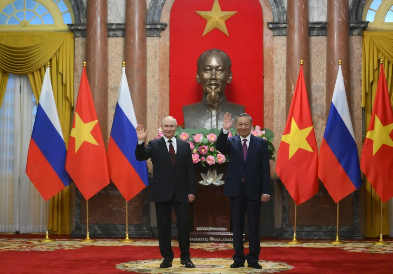 จากนั้น ปูติน ประธานาธิบดีรัสเซีย และคณะ ได้ร่วมประชุมหารือกับนายเหงียน ฟู่ จ่อง เลขาธิการพรรคคอมมิวนิสต์เวียดนาม ประธานาธิบดีโต เลิม และนายกรัฐมนตรีฟาม มินห์ จิน แห่งเวียดนาม เมื่อ 20 มิถุนายน 2567 หลังเสร็จสิ้นการเดินทางเยือนเกาหลีเหนือ เป็นครั้งแรกในรอบ 24 ปี