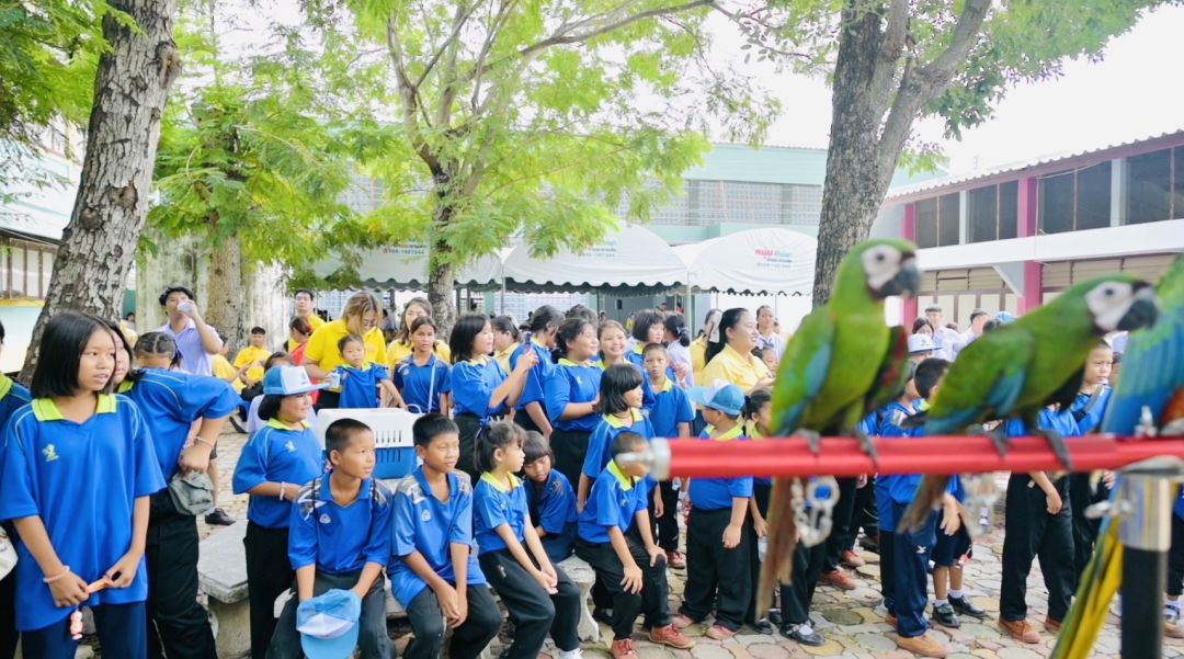 ในส่วนของการดูแลรักษา ทีมแพทย์ พยาบาลได้มีการจัดเตรียมการให้บริการ ตั้งแต่การตรวจคัดกรอง ตรวจวัดความดัน เจาะเลือดตรวจเบาหวาน ฝังเข็ม รักษาโรค และจ่ายยาให้กับผู้สูงอายุที่มีอาการเจ็บป่วย นอกจากนี้ยังมีการมอบทุนการศึกษา 40 ทุนให้กับเด็กนักเรียน และมอบตู้ยาสามัญประจำโรงเรียนจาก บริษัท พอนด์เคมิคอล จำกัด/บริษัท มาซาแลบ จำกัด โดย คุณชาตรี อุดมวิทย์ พร้อมได้นำบุคลากรช่างตัดผมมาบริการตัดผมให้กับพี่ ป้า น้าอา นอกสถานที่ สำหรับกิจกรรมสันทนาการความบันเทิง ทีมดาราได้ช่วยกันมอบอุปกรณ์การศึกษา เครื่องเขียน ขนม นม จัดเต็มความบันเทิงให้น้องๆ นักเรียนได้ร่วมสนุก นอกจากนี้ชมรมนกบินอิสระสุพรรณบุรีนำนกแก้วมาคอว์ มาโชว์ให้กับน้องๆ ได้ตื่นตาตื่นใจเพลิดเพลินไปกับความน่ารักของเหล่านกมาคอว์แสนรู้ สร้างความสุข ความสนุก ให้น้องๆ หนูอย่างเต็มที่ กิจกรรมที่จัดขึ้นครั้งนี้ เพื่อเป็นส่วนหนึ่งในการสร้างเสริมให้เด็กๆ เยาวชนได้เกิดแรงบันดาลใจในการขับเคลื่อนการเรียนรู้เป็นเยาวชนที่ดีต่อไป…
