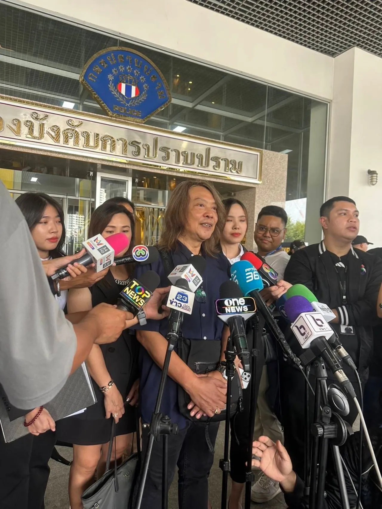 – ต้องแจ้งก่อนว่า เมื่อ 2 วันก่อนได้ไปแจ้งความไว้แล้วที่ สน.ประเวศ ส่วนวันนี้เดินทางมาแสดงความบริสุทธิ์ใจก็เลยมาแสดงตัวไว้ก่อน
