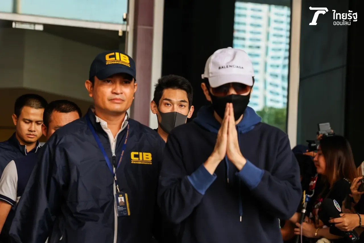 เปิดภาพ กันต์-แซม เครียดอิดโรย มิน พีชญา สวมเสื้อหลายชั้น ใส่แมส-แว่นดำ ขึ้นรถตู้ฝากขัง