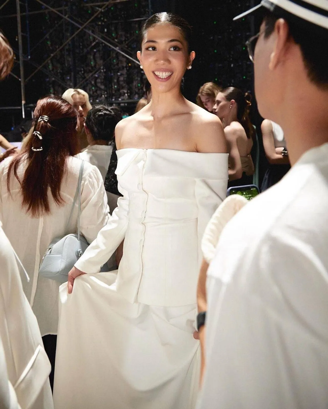 ซึ่งเทนนิสได้เปิดใจสั้นๆ กับการได้เป็นนางแบบบนเวทีระดับโลกนี้ว่า รู้สึกตื่นเต้น และเป็นประสบการณ์ใหม่ที่สุดในชีวิต เป็นการเดินแบบครั้งแรก ตื่นเต้นมากๆ ดีใจที่ทางแบรนด์ให้โอกาสนี้กับเทนนิส ขอบคุณมากๆ นะคะ สำหรับชุดที่ใส่ในวันนี้ก็เรียบหรูดูแพงมากๆ อีกด้วย