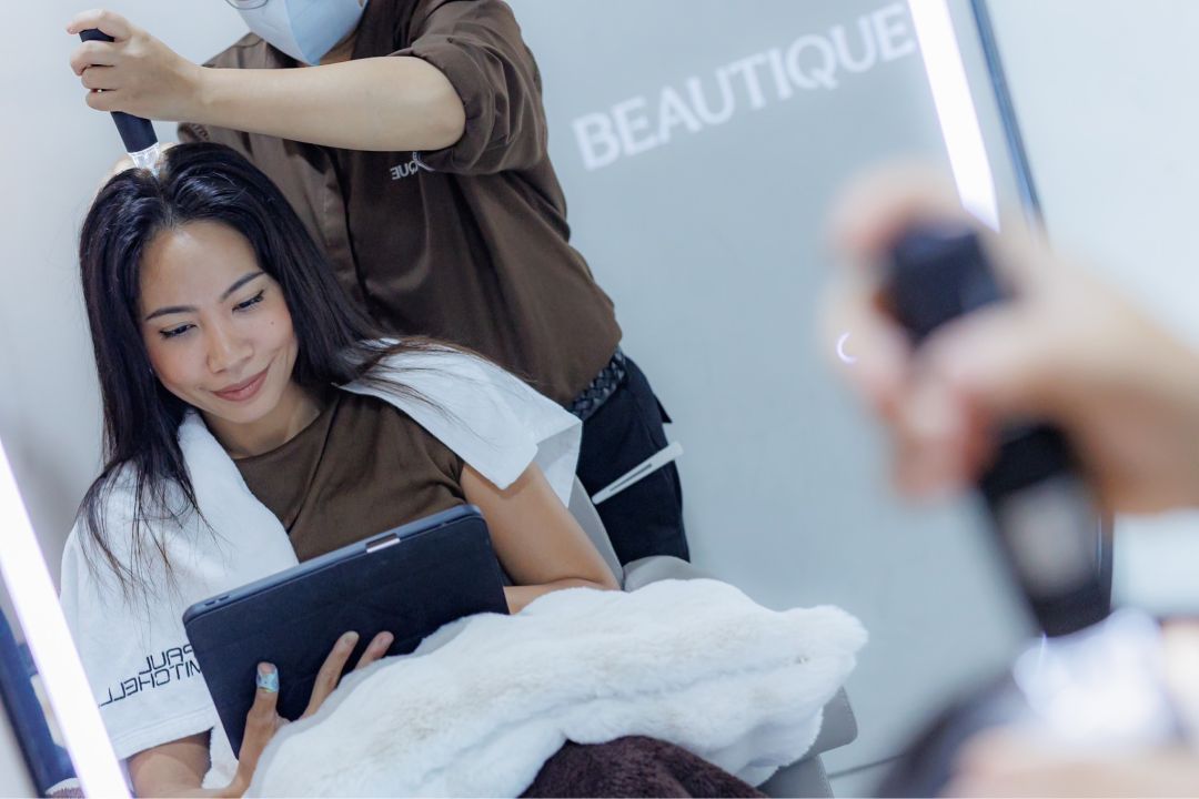 แบรนด์ Beautique Salon (บิวทีคซาลอน) มีเอกลักษณ์การบริการ ปรุงทุกความสวยด้วยความตั้งใจ+ ใส่ใจรายละเอียดทุกขั้นตอนโดยทีมช่างผมมืออาชีพ พร้อมเสิร์ฟบริการสุด Exclusive จุดพลุเปิดไลน์บริการทำผมรวมไปถึงดูแลเส้นผมครบวงจร อาทิ ตัดผม ทำสีออแกนิค รวมไปถึงการบำรุงผมด้วยทรีทเม้นท์ล้ำลึกให้สุขภาพผมดี เพื่อให้ทุกการดูแลผลมีประสิทธิภาพทางแบรนด์จึงวิเคราะห์สภาพหนังศรีษะ+ สภาพเส้นผมเพื่อการดูแลได้อย่างตรงจุด ด้วยทีมช่างผมที่มีประสบการณ์รู้จริง