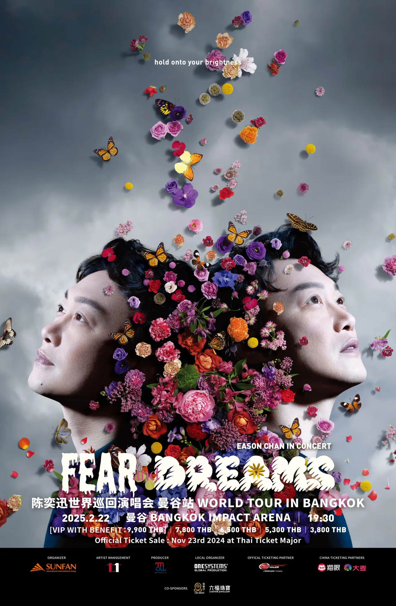 หลังจากห่างหายไป 12 ปี เมกาสตาร์แฟ่งวงการเพลงป็อปจีน อีสัน ชาน (Eason Chan) เตรียมกลับมาขึ้นสเตจพบแฟนๆ ชาวไทยอีกครั้งที่งาน FEAR and DREAMS World Tour โดยจะจัดขึ้นในวันเสาร์ที่ 22 กุมภาพันธ์ 2568 เวลา 19.30 น. ณ อิมแพ็ค อารีน่า เมืองทองธานี