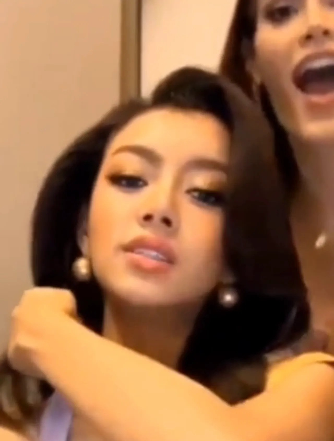 ชาวเน็ตขุดคลิปมิสแกรนด์เมียนมา 2024 ไลฟ์สด แต่ยกมือถือหนีเพื่อนนางงาม (คลิป)