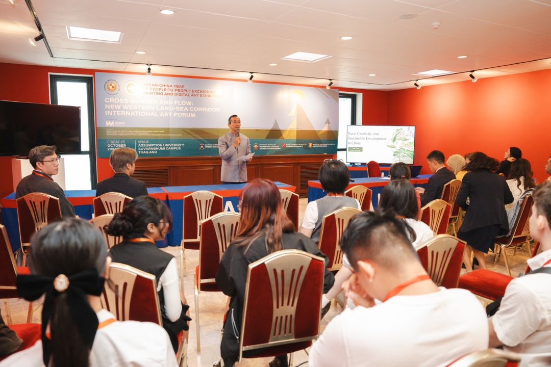 นอกจากนี้ ในวันเดียวกัน ยังมีการประชุมวิชาการ โดยคณาจารย์และผู้ทรงคุณวุฒิด้านศิลปะและวัฒนธรรมจากไทย, จีน และประเทศสมาชิกอาเซียน จำนวน 30 คน ภายใต้กรอบการเสวนา Cross-borderand Flow: New Western Land-Sea Corridor International Forum นำโดย ดร.อภิชาต อินทรวิศิษฏ์ ผู้อำนวยการหลักสูตรศิลปศาสตร์มหาบัณฑิต สาขาวิจิตรศิลป์และการออกแบบ นับเป็นการเปิดตัวภาควิชาใหม่ของมหาวิทยาลัย ซึ่งจะเริ่มหลักสูตรในเดือนมกราคม ศกหน้า