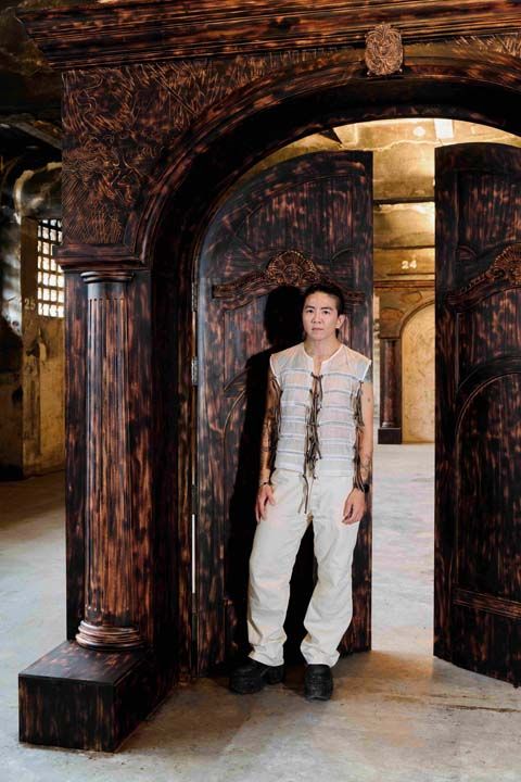 สำหรับผลงาน The Engineers,Cole Lu ท้าทายความคิดที่ว่า วิศวกรเป็นสถาปนิกของมนุษยชาติ และสำรวจต้นกำเนิดของความเหลื่อมล้ำทางสังคม งานศิลปะจัดวางเฉพาะที่นี้ ประกอบด้วยประติมากรรมประตูขนาดใหญ่ 2 บาน ทำมาจากไม้สะเดาและผ้าลินินเผาไฟ ซึ่งสะท้อนลักษณะทางสถาปัตยกรรมเดิมของพื้นที่ และนึกถึงวัฏฏะสงสารอันไม่รู้จบของการเกิดขึ้นและการดับไป Lu ใช้ไฟเป็นตัวกำหนดท่าทาง เขาสำรวจต้นกำเนิดการเล่าเรื่องจากการค้นคว้าเอกสารทางประวัติศาสตร์ คัมภีร์ทางศาสนา เทวตำนาน และโบราณวัตถุ สร้างความเข้าใจในเรื่องการเดินทางข้ามเวลา ประวัติศาสตร์ ความทรงจำ และบ้าน