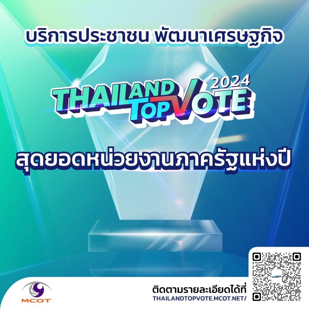 พลาดไม่ได้ที่จะร่วมเป็นส่วนหนึ่งของรางวัล “Thailand Top Vote 2024” ติดตามรายละเอียดเพิ่มเติม พร้อมอัพเดททุกผลการตัดสิน ได้ทาง https://thailandtopvote.mcot.net/