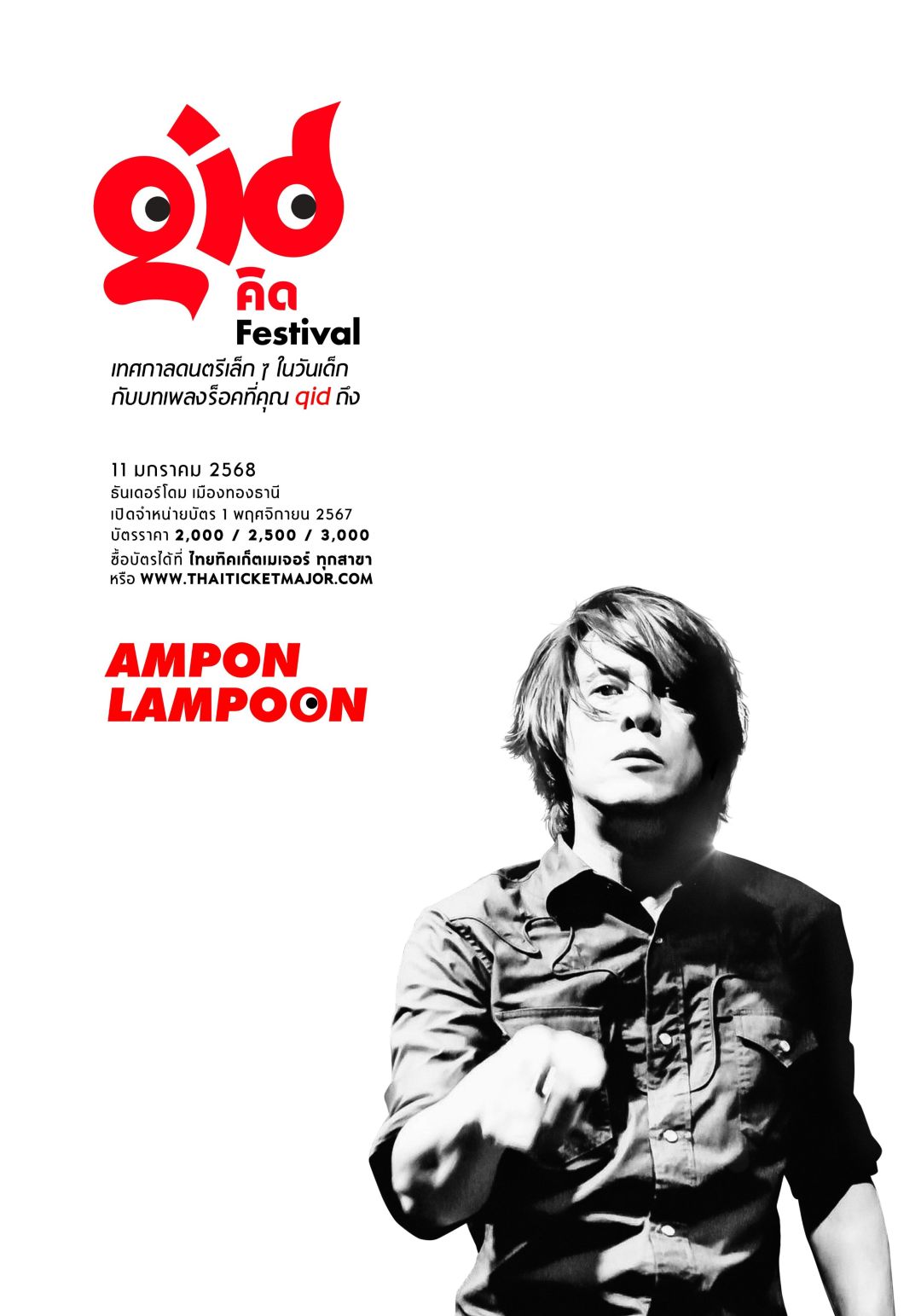 มาตะโกนร้องเพลงในวัยเด็กที่คิดถึงไปด้วยกัน ล็อกวันแล้วมาจองที่นั่งประจำตัวก่อนใครใน QID (คิด) Festival ย้อนวันวานผ่านบทเพลงร็อคที่“คิด”ถึง สามารถซื้อบัตรได้ตั้งแต่วันที่ 1 พฤศจิกายน 2567 เป็นต้นไป