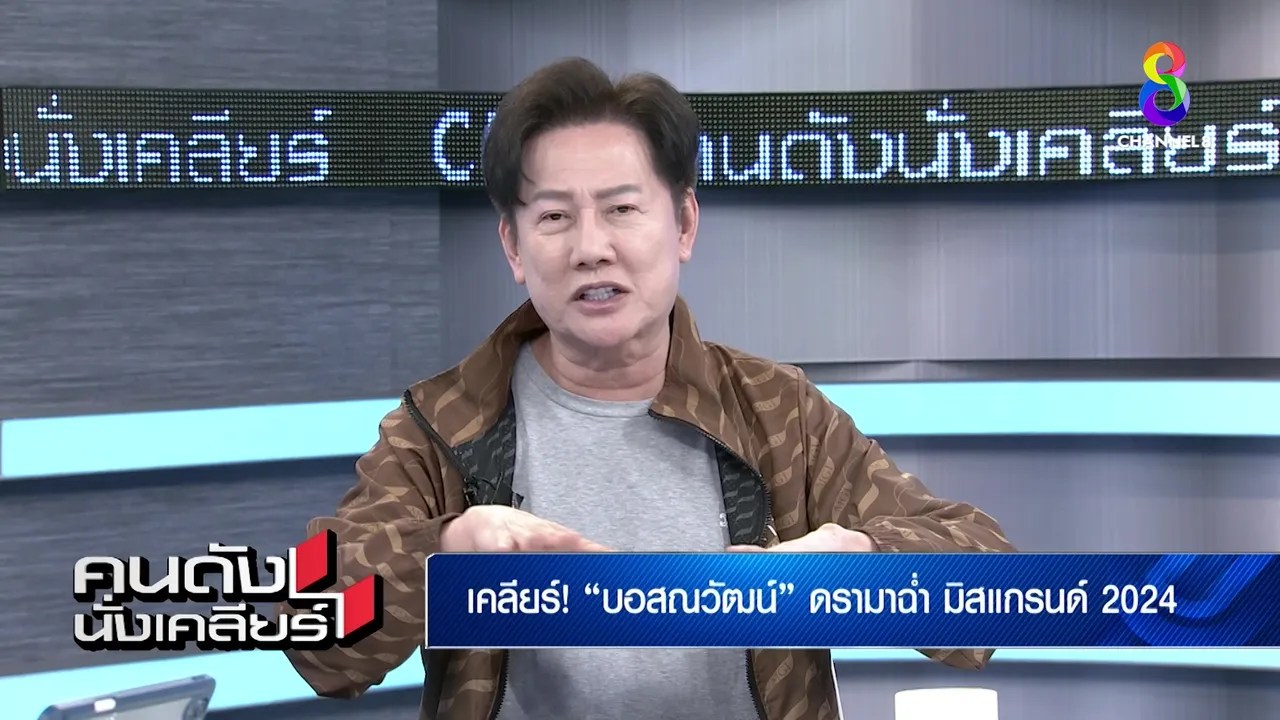 เรื่องราวใหญ่โต สำหรับดราม่าประกวด Miss Grand International 2024 ประเด็นนางงามจากเมียนมา รายการ คนดังนั่งเคลียร์ ช่อง 8 ในเครือ อาร์เอส กรุ๊ป จึงขอเชิญ ณวัฒน์ อิสรไกรศีล ประธานเจ้าหน้าที่บริหาร บริษัท มิสแกรนด์ อินเตอร์เนชั่นแนล จำกัด (มหาชน) มาร่วมพูดคุยถึงกรณีดังกล่าว หลายคนสังเกตว่า มิสแกรนด์เมียนมา ไม่สมควรได้รองอันดับ 2 จริงหรือไม่ แถมมิสแกรนด์อินเดีย เหมาะสมจริง ได้มาเพราะบอสช้อยส์หรือเปล่า และจริงไหม ฮตูแอนท์ หลวิน ND มิสแกรนด์เมียนมา มีคนไทยเปย์หนักช่วยซื้อลิขสิทธิ์