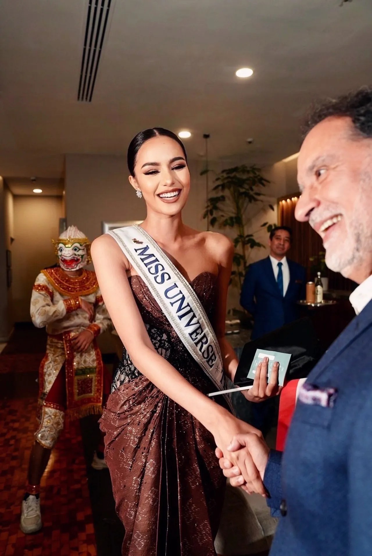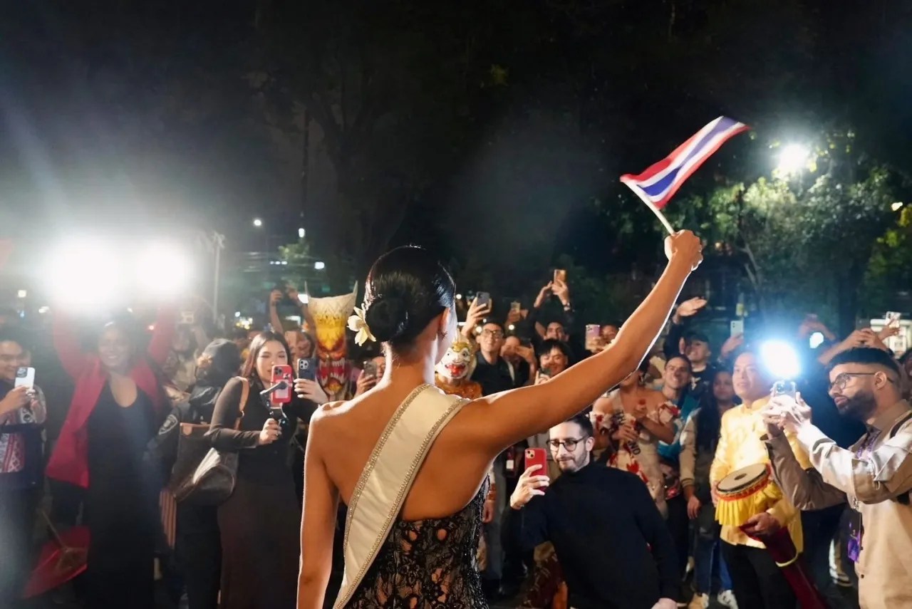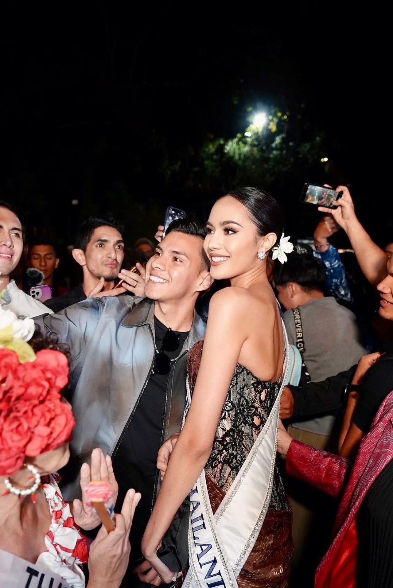 โดยชุดเข้ากองของ โอปอล เธอได้เลือกสวมเดรสผ้าไทยจากแบรนด์ Sirivannavari ซึ่งเป็น 1 ในชุดจากรันเวย์แฟชั่นโชว์ Silk Festival 2023, Silk Success Sustainability โครงการที่ผลักดันดีไซเนอร์รุ่นใหม่ของกรมพัฒนาชุมชน ภายใต้คอนเซ็ปต์ ผ้าไทยใส่สนุก แมทช์เข้าชุดกับเครื่องประดับจาก punpundesign และรองเท้าจาก flynowbangkok
