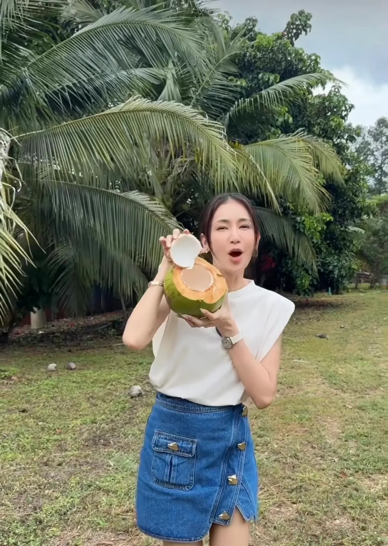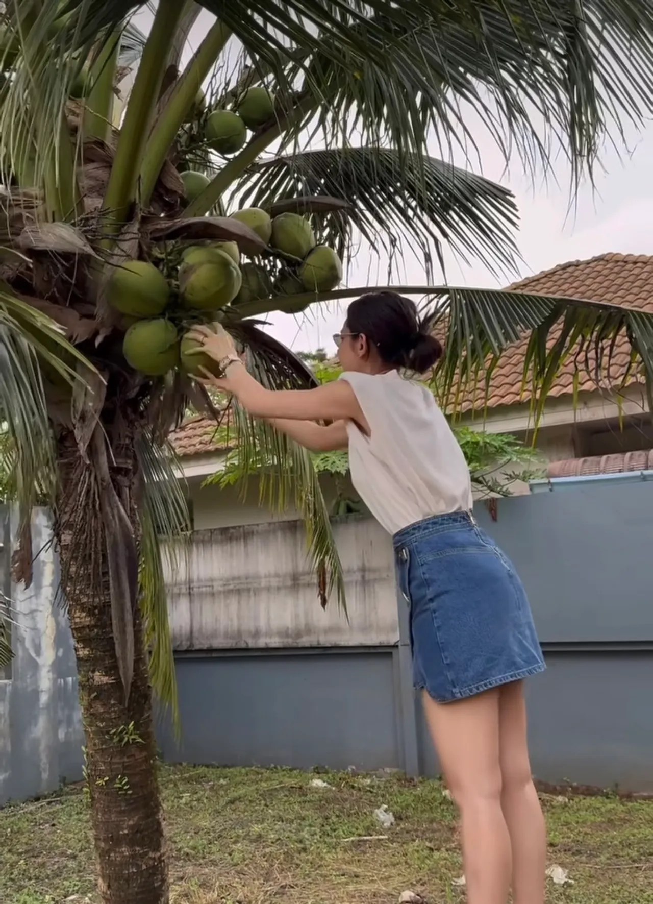 ซึ่เป็นภาพที่แฟนคลับหลายคนเห็นแล้วต่างชื่นชมความเก่งของเธอ ที่ทำเป็นแม้กระทั่งเก็บมะพร้าวจากต้น และเข้าครัวทำอาหารกินเอง ใช้ชีวิตแบบเรียบง่าย สลัดภาพความเป็นดาราไปเลย