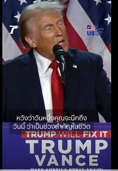 ผลเลือกตั้งสหรัฐฯ 2024 : “โดนัลด์ ทรัมป์” นำพรรครีพับลิกัน ประกาศชัยชนะศึกเลือกตั้งประธานาธิบดี หลังผลการเลือกตั้งอย่างไม่เป็นทางการออกมา และสื่อต่างๆประเทศคาดการณ์ว่าทรัมป์ชนะแล้ว