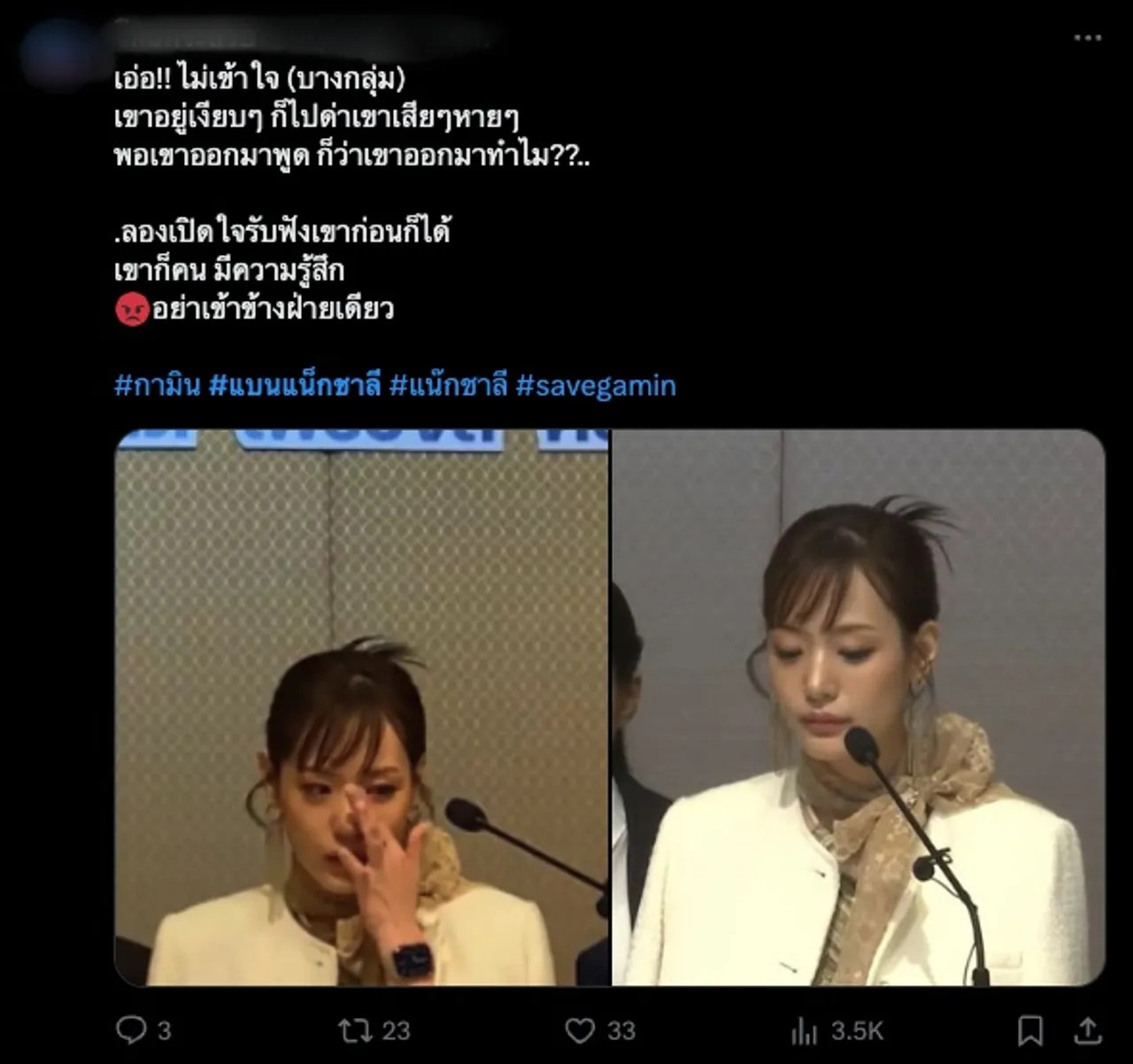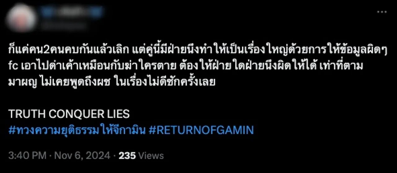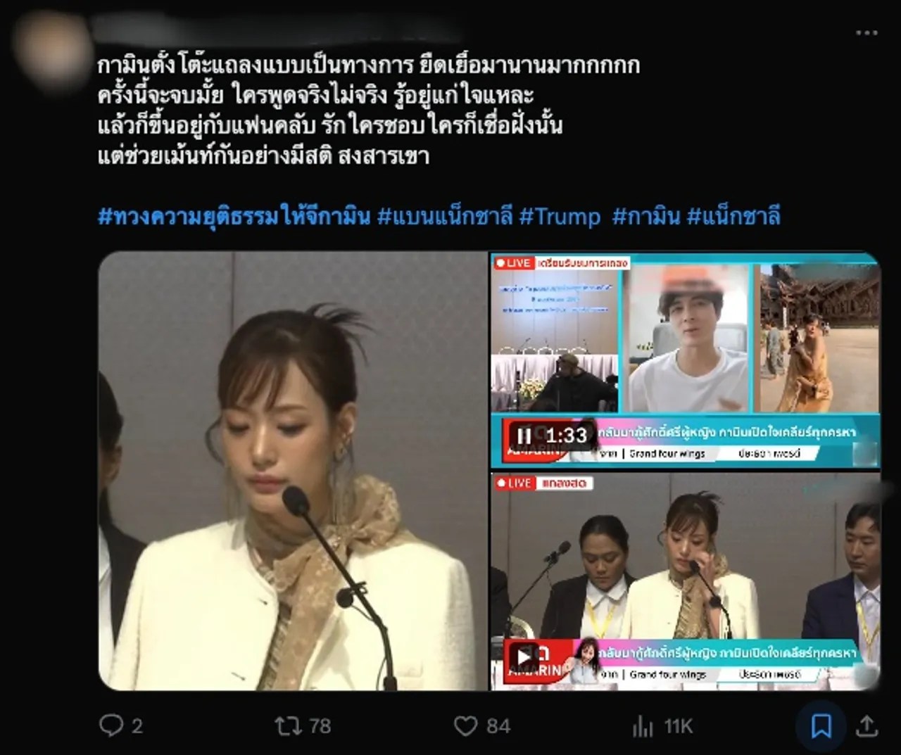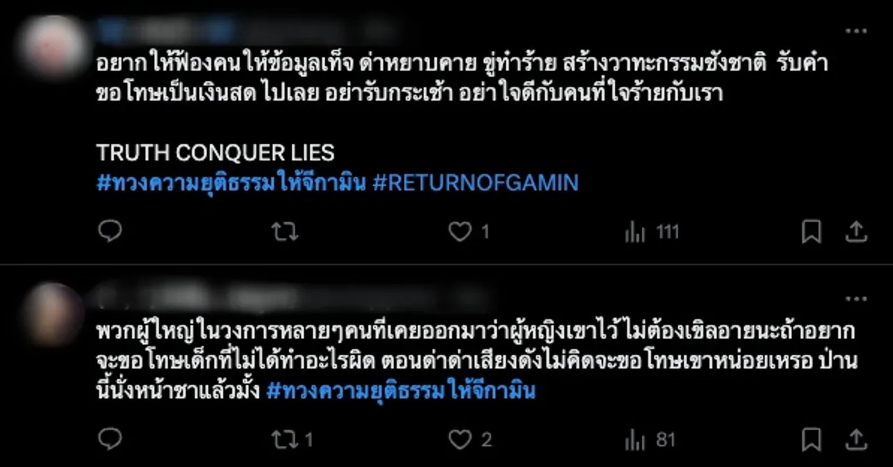 โซเชียลติด #ทวงความยุติธรรมให้จีกามิน #แบนแน็กชาลี หลัง กามิน แถลงข่าวที่ไทย