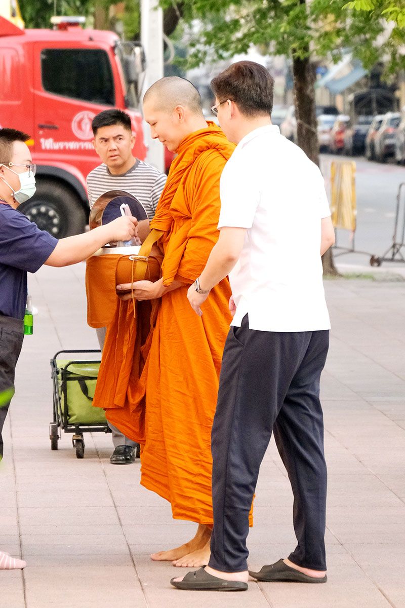 โดยมีครอบครัวของ “พระมิว” และคู่หมั้น “ตุลย์ ภากร” พร้อมด้วยแฟนคลับและประชาชนมาร่วมทำบุญตักบาตรด้วย ซึ่งตลอดระยะทางที่ “พระมิว”เดินบิณฑบาตนั้น เหล่าบรรดาแฟนคลับมากมาย ต่างมายืนรอใส่บาตรด้วยความสำรวมเรียบร้อย จนได้รับเสียงชื่นชมจากประชาชนโดยรอบ พร้อมสร้างศรัทธาให้คนรุ่นใหม่เริ่มเข้าวัดทำบุญกันมากขึ้น ซึ่งหลังจากนี้“พระมิว” จะเดินทางไปจำวัดที่วัดป่าในจังหวัดเชียงใหม่