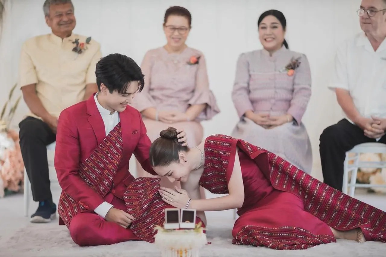 ส่วนพิธีที่จัดไป มันเป็นการหมั้นแต่ง แต่ของเราถือเป็นงานหมั้นละกัน เพราะไม่อยากใส่ชุดไทยแบบเอิงเอยขนาดนั้น อยากมีพิธีน่ารักๆ เราก็จะฉลองกันอีกที ส่วนฉลองมงคลสมรสก็ปลายปีหน้า”