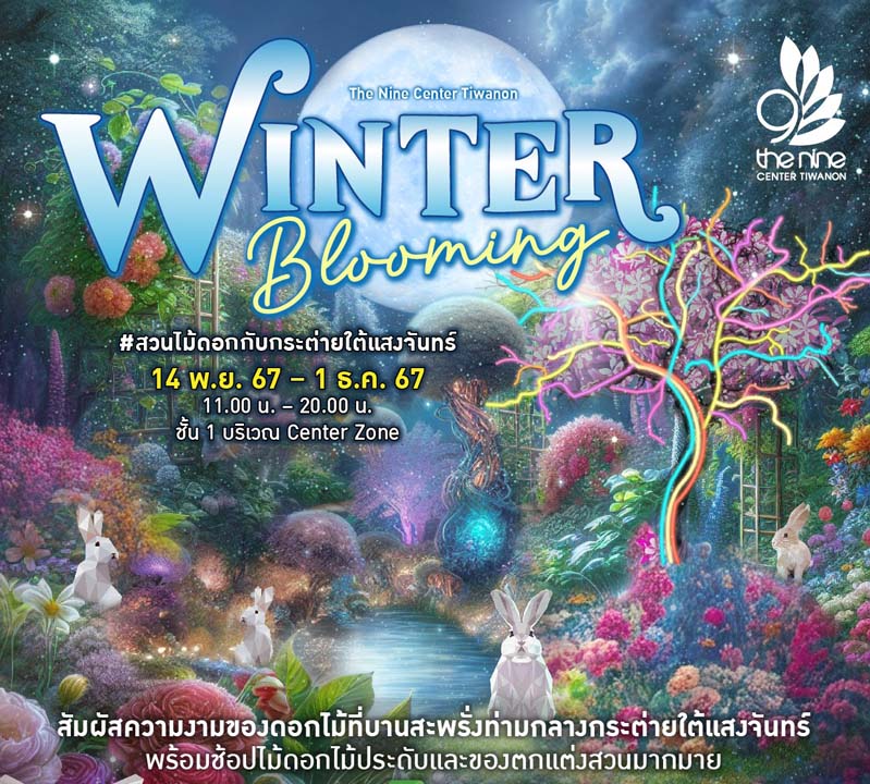 ชวนช็อปไม้ดอก ไม้ประดับและของตกแต่งสวน ในงาน “WINTER Blooming #สวนดอกไม้กับกระต่ายใต้แสงจันทร์” พร้อมเวิร์กช็อป D.I.Y. ถึง 1 ธ.ค.ที่ ศูนย์การค้าเดอะไนน์ เซ็นเตอร์ ติวานนท์
